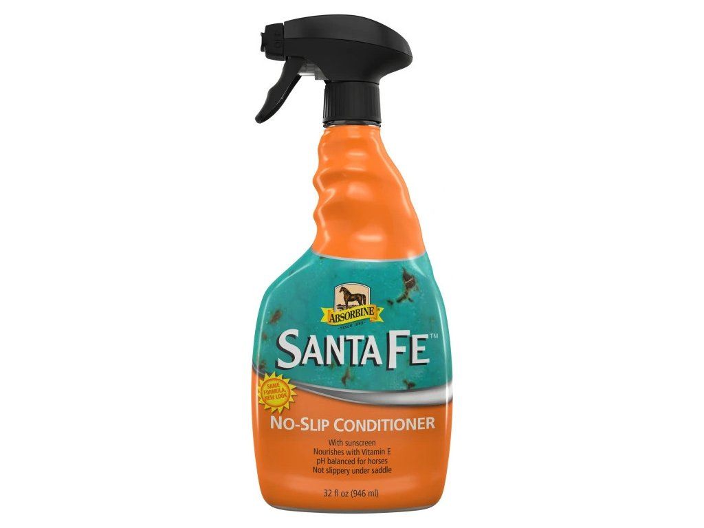 Absorbine Santa Fe je kondicionér na konskú srsť a opaľovací krém v spreji s vitamínom E a panthenolom. Santa Fe vám poskytne maximálnu hĺbkovú úpravu srsti a jej ochranu pred nežiaducimi účinkami slnečného žiarenia. Majitelia športových koní ocenia zmäkčenie srsti. Jednotlivé chlpy sa nezamotávajú a srsť nie je klzká, čo oceníte najmä v sedlovej oblasti. Výrobok bol vyvinutý odborníkmi na starostlivosť o srsť Absorbine a spoliehajú sa naň špičkoví ošetrovatelia a chovatelia. Fľaša s rozprašovačom 946 ml