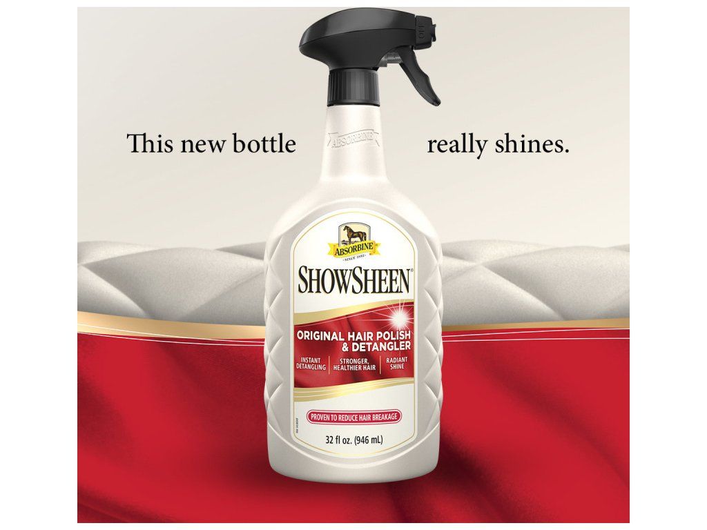 Absorbine ShowSheen Shine & Detangler je unikátny lesklý sprej, ktorého zloženie prináša jedinečnú pomoc pri starostlivosti o srsť, hrivu a chvost koňa. Jedinečné, ľahké zloženie jemne pokryje každý chlp alebo vlas koňa, aby sa dali ľahko rozčesať, a zároveň jeho vyživujúce zloženie zabraňuje efektu elektrizujúcich, poletujúcich vlasov.