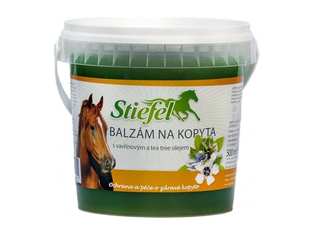 Stiefel Balzam na kopytá, ochrana kopýt a starostlivosť o kopytá. Účinná starostlivosť o kopytá prostredníctvom základných účinných látok a éterických olejov. Každodenná aplikácia má pozitívny vplyv na štruktúru, pružnosť a súdržnosť kopyta. Kopyto je chránené pred škodlivými mikroorganizmami. Reguláciou vlhkosti v kopytách zabraňuje lámavosti a praskaniu. Strelka a korunka zostávajú ošetrené, pružné a vláčne. S vavrínovým a čajovníkovým olejom.