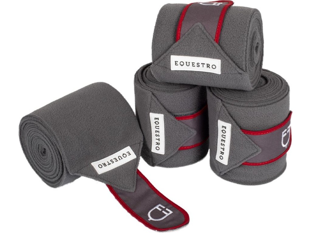 Bandáže fleecové White Trim Equestro, 4 ks, 3,8 m, grey/red
