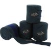 Fleecové bandáže sú mäkké, priedušné a zároveň poskytujú potrebnú oporu šľachám a kĺbom. Materiál z kvalitného fleecu dobre drží tvar, ľahko sa udržuje a je príjemný na dotyk. Bandáže sú dostatočne dlhé, čo umožňuje pohodlné a bezpečné omotanie nôh koňa. Zapínanie na suchý zips umožňuje ľahkú a rýchlu aplikáciu a zaisťuje, že bandáže pevne držia na mieste. Na zapínaní je navyše umiestnený dekoratívny odznak, ktorý podčiarkuje elegantný vzhľad bandáží. Predávajú sa v sade po 4 kusoch a sú ideálnou voľbou na ochranu a podporu nôh pri práci aj odpočinku. Vhodné sú na každodenný tréning aj transport koňa.