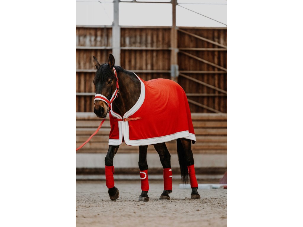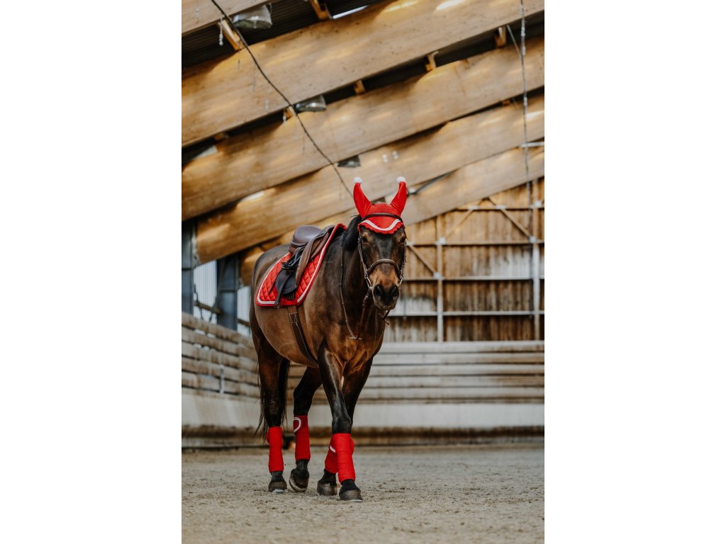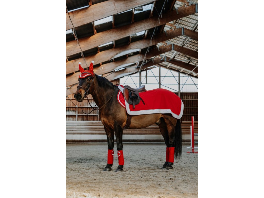 Dolaďte vianočný outfit vášho koňa s vianočnými bandážami. Tieto bandáže sú vyrobené z výrazného červeného fleecu a zapínajú sa na pevný suchý zips, ktorý je zdobený striebornou paspulkou, ktorá sa trbliece. Jedna bandáž meria 3 m. Dodávané v súprave po 4 kusoch. Vhodné na fotenie či na karneval.