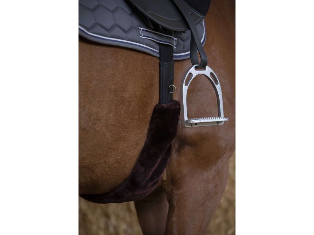 Baranček na podbrušník z mäkkého a pevného syntetického barančeka poskytuje koňovi maximálne pohodlie a chráni proti oderu a spáleniu. Ideálne pre citlivé kone. Vďaka kvalitnému materiálu z polyesteru je odolný a ľahko sa udržuje. Praktické a komfortné riešenie pre bezpečné a pohodlné nosenie podbrušníku pri každodennej práci aj počas dlhších jázd.