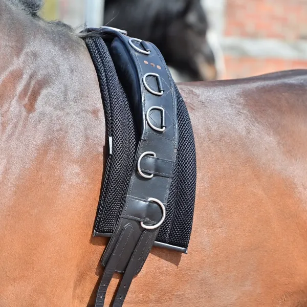 Anatomicky tvarované drezúrne podbrušníky z osvedčenej viacvrstvovej sieťoviny zabezpečujú skvelé rozloženie tlaku, tvarovú stálosť, vynikajúcu cirkuláciu vzduchu a rýchly odvod vlhkosti. Navyše chránia srsť a kožu koňa pred odieraním. Sú veľmi ľahké na údržbu – stačí ich len umyť vodou.