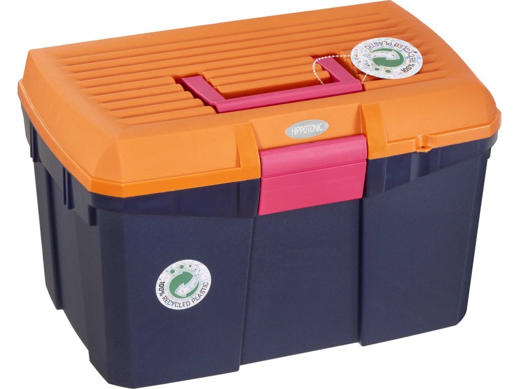 Praktický dvojfarebný čistiaci box z odolného polypropylénu je ideálnym pomocníkom do stajne aj na cesty. Vďaka zosilnenému veku ho možno použiť nielen na uloženie čistiacich pomôcok, ale aj ako stoličku na nasadanie či pomôcku pri strihaní alebo zapletaní hrivy. Box je stabilný a unesie až 100 kg. Vnútri sa nachádza vyberateľná priehradka na drobné predmety, ktorá uľahčuje organizáciu a prehľadnosť. Box sa predáva bez príslušenstva a je uzamykateľný.