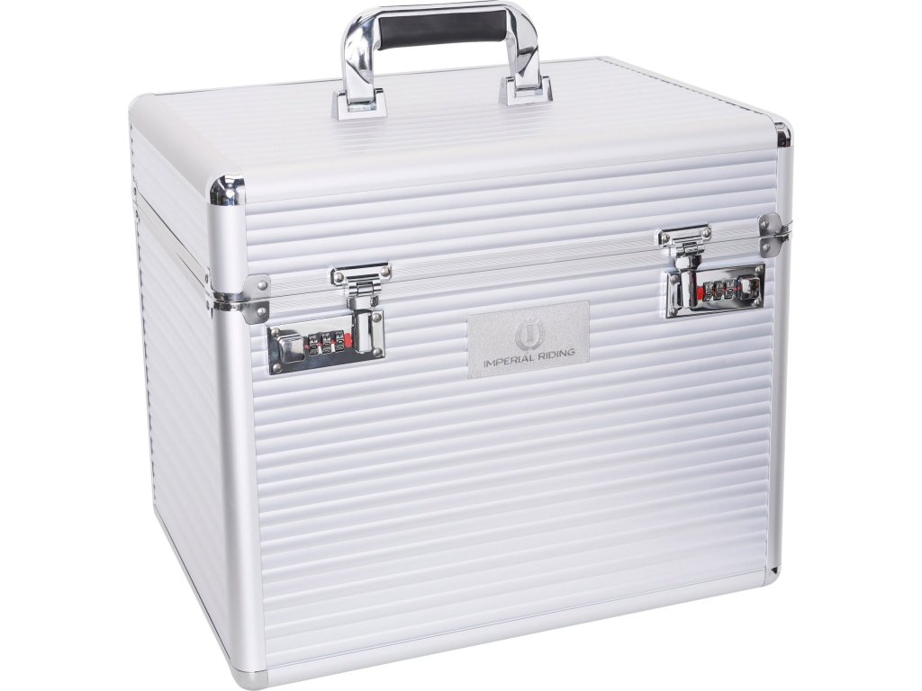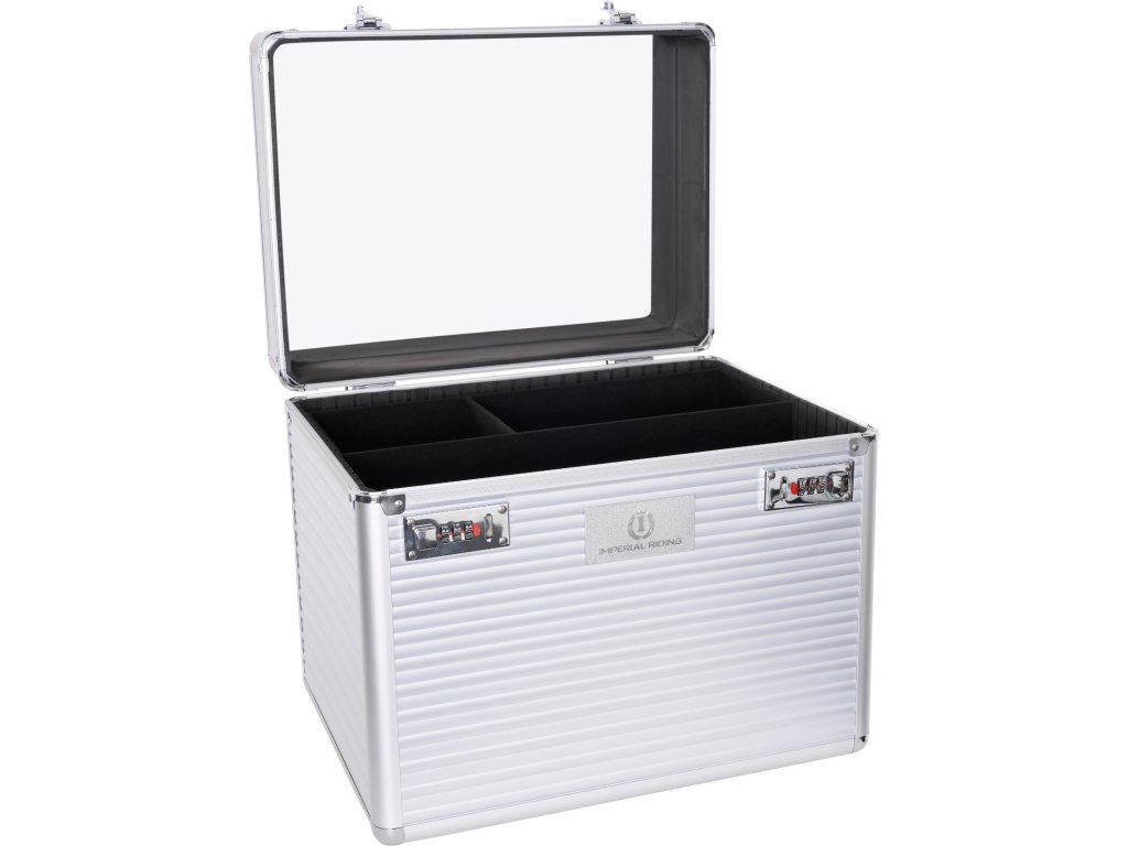 Veľký čistiaci box Shiny je elegantný a praktický pomocník, ktorý udrží vaše čistenie aj iné jazdecké potreby vždy perfektne usporiadané. Tento obľúbený kúsok ponúka dostatok priestoru na kefy, hrebene aj ďalšie nevyhnutnosti, ktoré potrebujete na každodennú starostlivosť o kone alebo na pretekoch. Box je z vnútra mäkko polstrovaný a na veku z vnútornej strany má zrkadlo pre rýchlu kontrolu účesu či finálnu úpravu pred pretekmi. Zatváranie je riešené dvoma zámkami na kód. Box je vyrobený z pevného, odolného a ľahko umývateľného materiálu, takže je pripravený na každodenné používanie aj náročnejšie podmienky.