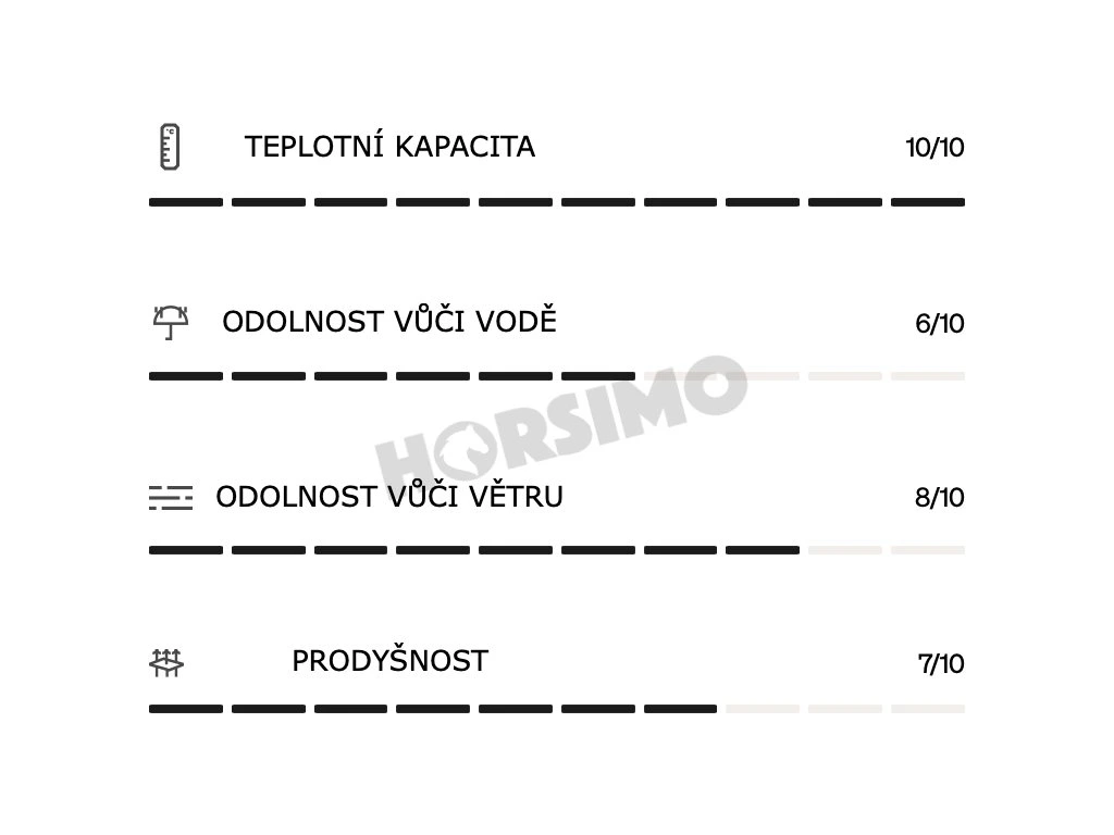 - vodný stĺpec: 8000 mm, ppriedušnosť: 5000 g/m²/24 h