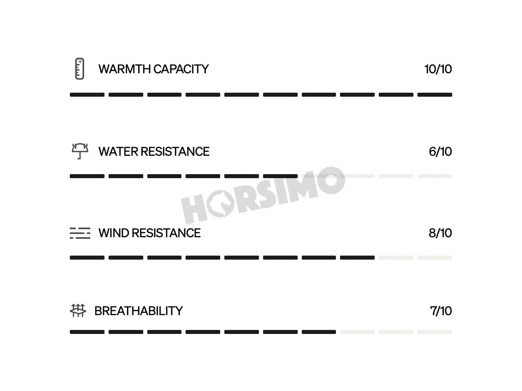 Bunda Arctic Puffer je vylepšenou a ľahšou verziou bundy Igloo. Kolekcia Arctic so športovým dizajnom a elegantným strihom spája maximálny tepelný komfort s úplnou voľnosťou pohybu. Je ideálny na jazdu na koni, prechádzky so psom, ako aj do mesta. Jedná sa o najteplejšiu jazdeckú bundu v ponuke od výrobcu Uhip. Bunda je vyplnená kvalitnou izoláciou, ktorá vás udrží v teple aj počas najchladnejších zimných dní. Vonkajšia membrána TPU poskytuje vodotesnú ochranu (8000 mm vodného stĺpca) a vynikajúcu priedušnosť. Membrána TPU v kombinácii s odolnou vonkajšou tkaninou z recyklovaného polyamidu poskytuje spoľahlivú ochranu pred snehom. Táto zimná bunda vás udrží v suchu a príjemnom teple počas celého dňa, či už ste v pohybe alebo stojíte na mieste. Bunda Arctic Puffer je špeciálne navrhnutá tak, aby spĺňala potreby jazdcov, a vďaka svojim jedinečným vlastnostiam je ideálna na jazdenie. Má predný dvojcestný zips a zadné rozparky s vetracími otvormi, ktoré vám umožnia pohodlne sedieť v sedle. Ponúka tiež predĺžené manžety rukávov, ktoré sa dajú podľa potreby vyhrnúť. Vnútorné manžety poskytujú ešte väčšiu ochranu pred vlhkosťou a chladom.