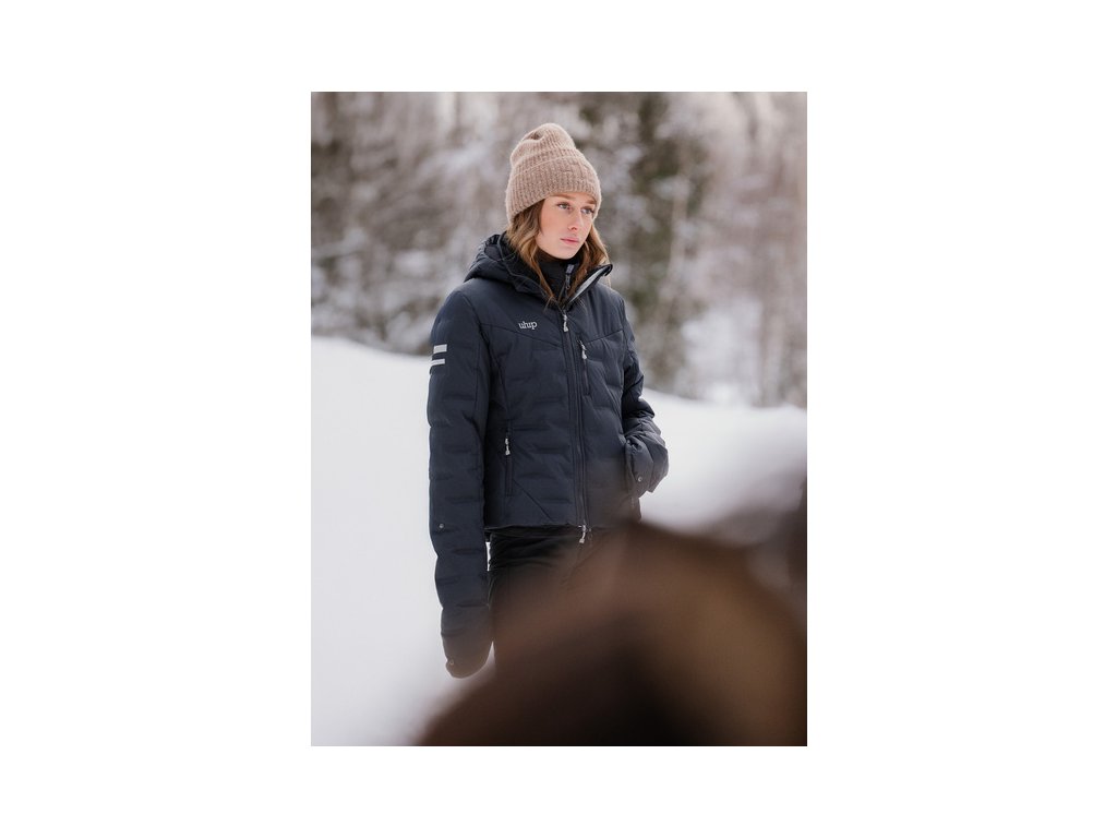 Veľmi teplá zimná bunda od švédskeho výrobcu UHIP. Ice bunda je ideálnou voľbou, ak trávite veľa času vonku a potrebujete outdoorové oblečenie, ktoré vás udrží v teple a ochráni pred dažďom. K bunde si môžete dokúpiť samostatne zateplenú sukňu, pomocou ktorej si môžete z bundy vytvoriť kabát. Vytvorený kabát môžete vynosiť ešte vo väčšej zime. Je to výborná voľba na zimu nielen do sedla, stajne, ale aj do mesta. Športový strih prispôsobený ženským krivkám. Bunda je vybavená dvojcestným predným zipsom a praktickými vreckami. Ďalej vysokým útulným golierom, odnímateľnou kapucňou a rukávmi, ktoré môžu slúžiť ako rukavice a dajú sa vyhrnúť podľa potreby.