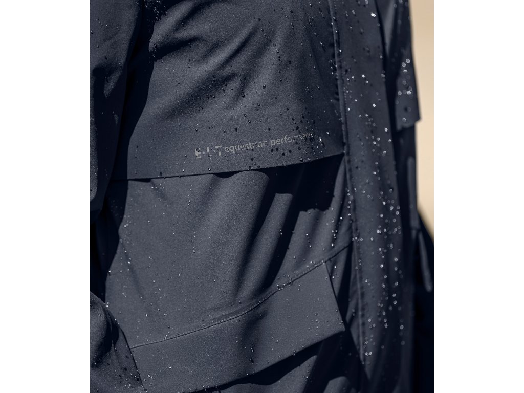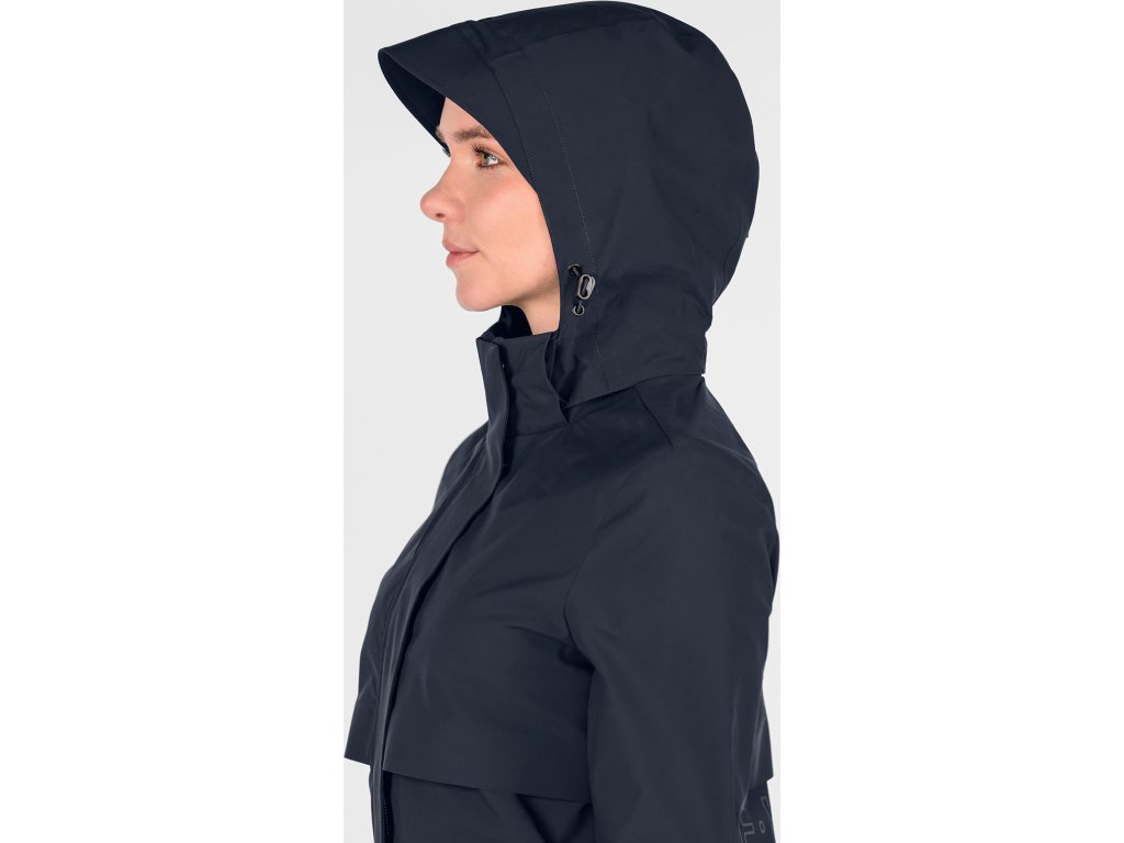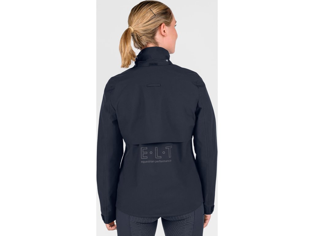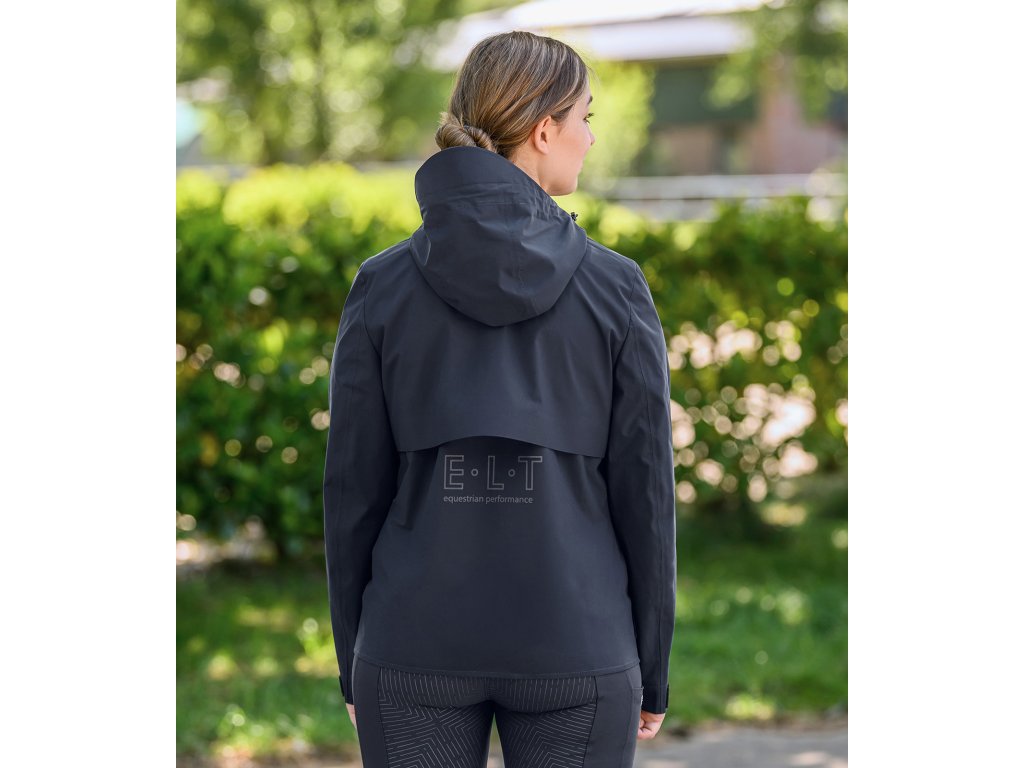 Vysoko funkčná dámska bunda je ideálnou voľbou do nepriaznivého daždivého počasia. Lichotivý strih sa prispôsobí postave a zároveň neobmedzuje v pohybe. Vodoodolný materiál s vodným stĺpcom 5 000 mm a podlepené švy spoľahlivo chránia pred dažďom, zatiaľ čo priedušnosť 5 000 g/m²/24 h zaisťuje komfort aj pri vyššej aktivite. V oblasti chrbta je bunda rozdelená a vybavená integrovaným ventilačným otvorom pre lepšiu cirkuláciu vzduchu. Vnútorná podšívka zo sieťoviny s priedušnosťou 6 000 g/m²/24 h podporuje odvádzanie vlhkosti a zvyšuje celkový komfort nosenia. Odnímateľná kapucňa je plne nastaviteľná, možno ju zaistiť vzadu a je vybavená sťahovacou aj elastickou šnúrkou pre optimálne prispôsobenie. Predná léga je lepená a doplnená skrytými patentkami, kvalitný dvojsmerný zips v kovovom vzhľade má ochranu brady a matne čierny kovový ťaháčik s logom E·L·T. Bunda disponuje dvoma prednými vreckami prekrytými ochrannou chlopňou, s magnetickým zapínaním a skrytým zipsom. Nastaviteľné manžety rukávov so suchým zipsom umožňujú individuálne nastavenie. Pre vyššiu bezpečnosť je bunda doplnená reflexným nápisom E·L·T Equestrian Performance a výraznou reflexnou potlačou na zadnej časti. Vrchný materiál aj podšívka sú vyrobené zo 100% polyesteru, ktorý zaisťuje odolnosť a jednoduchú údržbu.