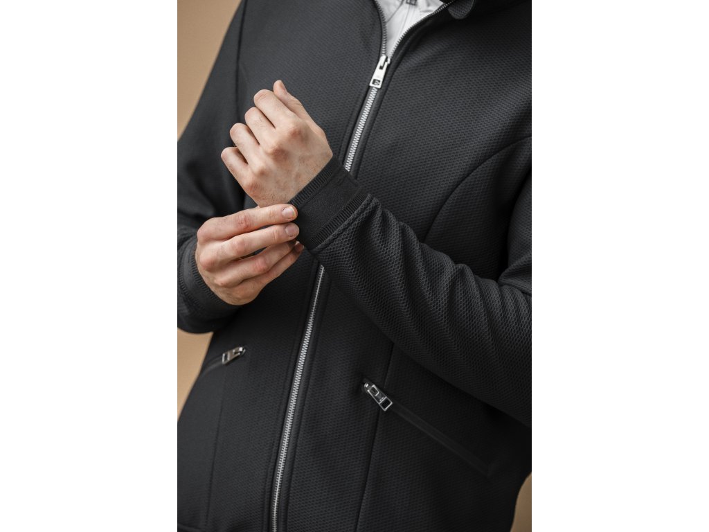Pánska bunda Respira ponúka dokonalú kombináciu funkčnosti a športového štýlu. Je vyrobená z pružného materiálu s technológiou Bonded MotionLite mesh a zateplená moderným fleecom na vnútornej strane. Táto kombinácia zaisťuje ľahkosť, hrejivosť a voľnosť pohybu. Vďaka vetruodolnému prevedeniu je vhodná na celoročné nosenie. Ventilačné otvory v podpazuší podporujú priedušnosť a optimálnu reguláciu teploty. Praktické vrecká na zips poskytnú bezpečný priestor na drobnosti.