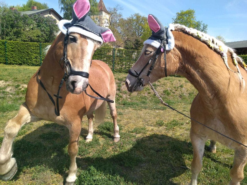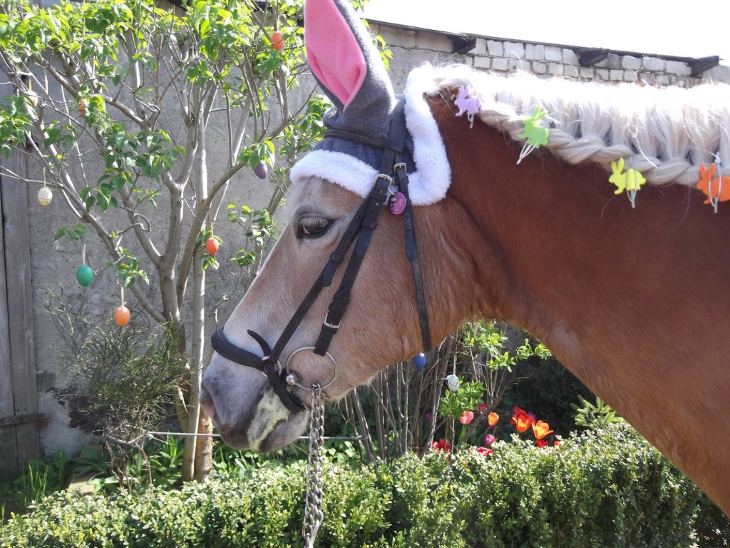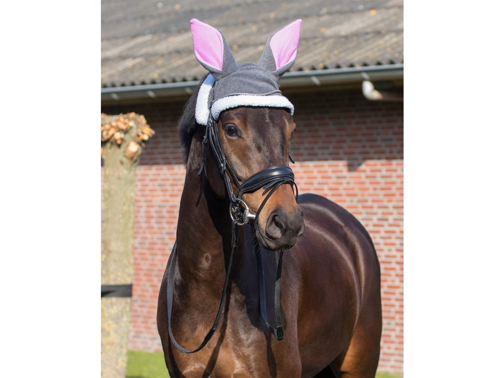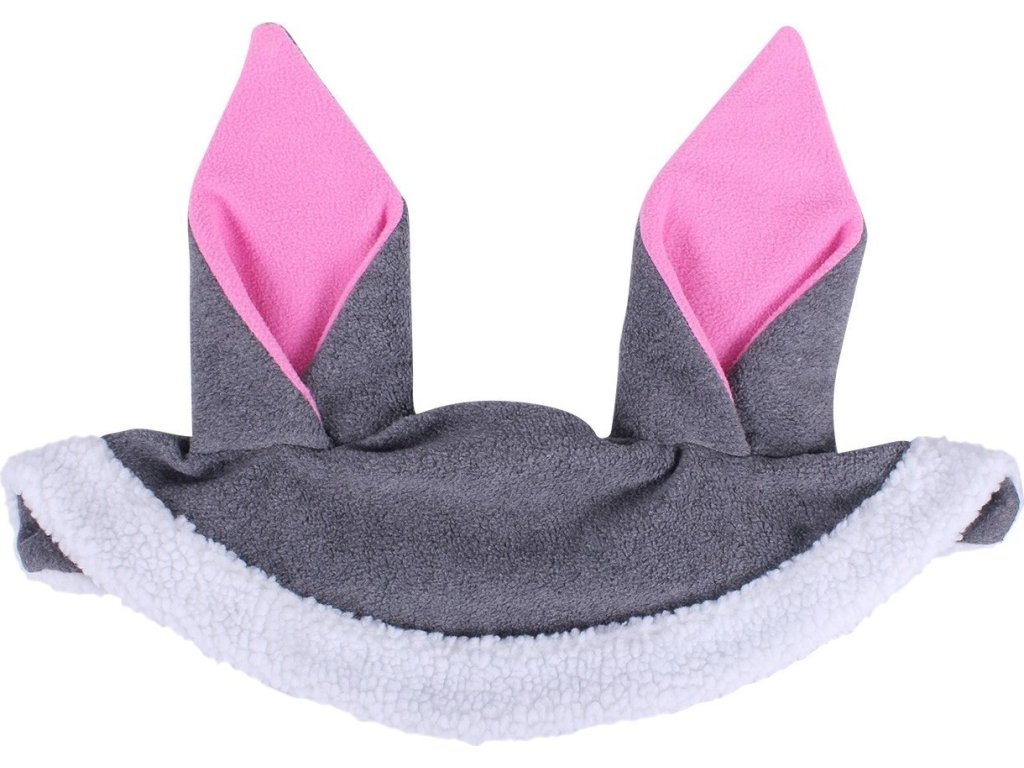 Veľkonočná ušaňa s králičími ušami. Uši sú vyrobené z fleecu a biely okraj uší je z bieleho teddy fleecu. Ušaňa je lemovaná neoprénom.
