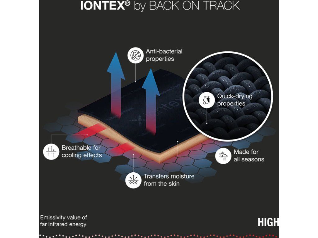 Výrobca Back on Track neustále hľadá nové inovatívne možnosti. Po úspechu niekoľkých produktov z materiálu Welltex®, ktorý bol vyvinutý s cieľom maximalizovať jeho účinky, vznikol rad pevných a robustných výrobkov s intenzívnym terapeutickým účinkom. Na ďalšie rozšírenie ponuky bol vyvinutý materiál Iontex®. Iontex® funguje na rovnakom princípe ako Welltex®, ale jeho vlákna obsahujú jemnejšie keramické častice, čo umožňuje vytvoriť tenšiu a pružnejšiu tkaninu. Vďaka tomu bolo možné navrhnúť elastické odevy, ľahké športové oblečenie aj pletenú kolekciu, čím sa portfólio Back on Track rozšírilo o ešte pohodlnejšie a všestrannejšie produkty.