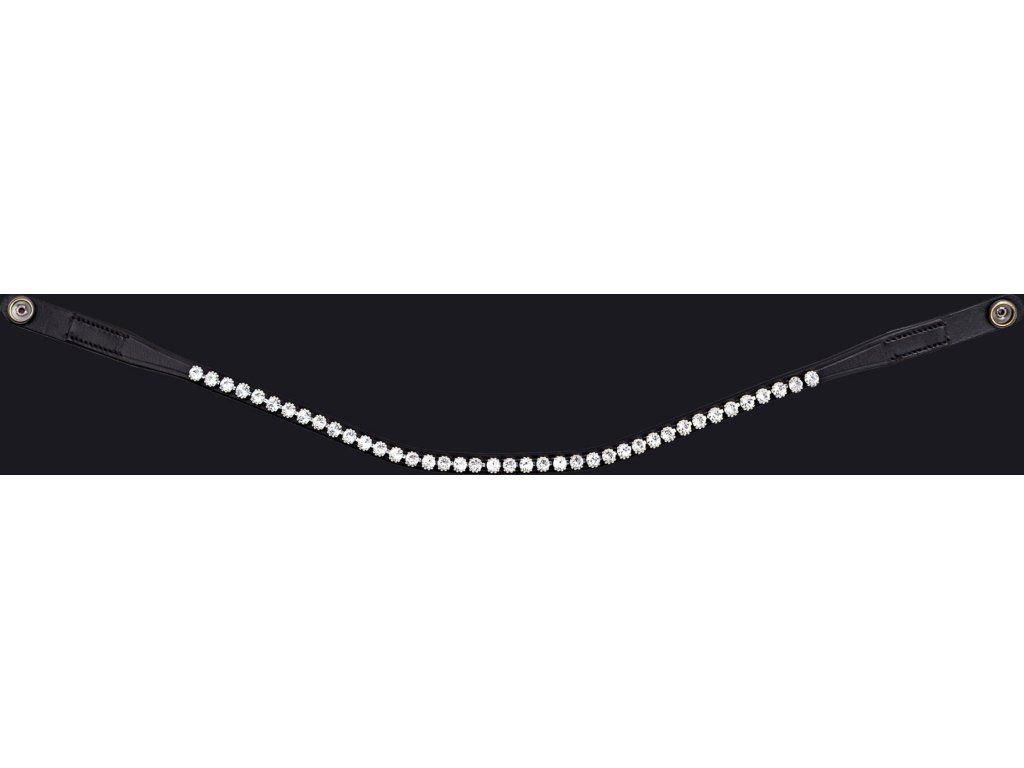 Kvalitná kožená čelenka k uzdečke FaySport PresTeq v čiernom prevedení so striebornými kamienkami. Čelenka je k dispozícii v niekoľkých farebných variantoch. PresTeq používa originálne krištále Swarovski, ktoré optimálne odrážajú svetlo a navyše nádherne žiaria. Vďaka systému PressTEQ je výmena čelenky veľmi jednoduchá. Už nemusíte rozoberať celú uzdečku, ale môžete jednoducho rozopnúť patentky (cvoky) a vymeniť čelenku. Za niekoľko sekúnd získate nový vzhľad.