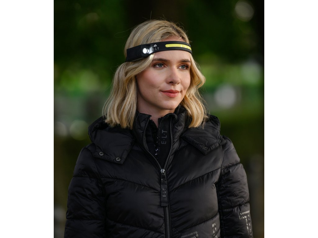 Výkonná LED čelovka s integrovaným pohybovým senzorom ponúka presné aj širokouhlé osvetlenie vďaka kombinácii XPE bodového svetla s výkonom 100 lúmenov a COB svetelného pásika s výkonom 320 lúmenov a extra širokým 230° uhlom svietenia. Vstavaná 1200 mAh lítium-iónová batéria sa nabíja pomocou USB-C kábla, ktorý je súčasťou balenia. Čelovka disponuje piatimi režimami svietenia – dvoma intenzitami XPE svetla, dvoma intenzitami COB pásika a červeným COB svetlom – ktoré možno jednoducho prepínať stlačením tlačidla. Pre maximálny komfort je vybavená aj bezkontaktným zapínaním a vypínaním pomocou integrovaného pohybového senzora. Elastická, veľkostne nastaviteľná čelenka je kompatibilná aj s jazdeckou prilbou a na bočnej strane čelovky je umiestnená decentná potlač loga E·L·T.