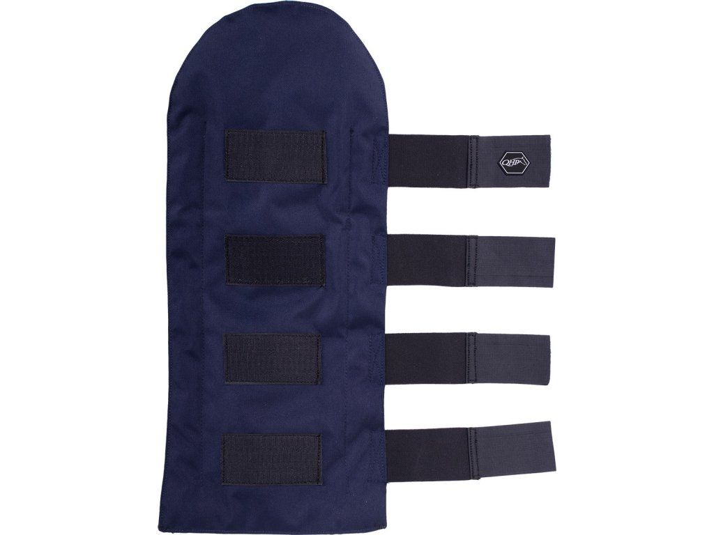 Praktický chránič chvosta na prepravu, ktorý zabraňuje zachytávaniu konských vlasov a chráni zapletený chvost pred odieraním. Chránič sa dá pripevniť pomocou štyroch elastických popruhov na suchý zips. Mäkké polstrovanie zabezpečuje maximálne pohodlie pre koňa. Zdobený logom QHP. Dĺžka 52 cm.