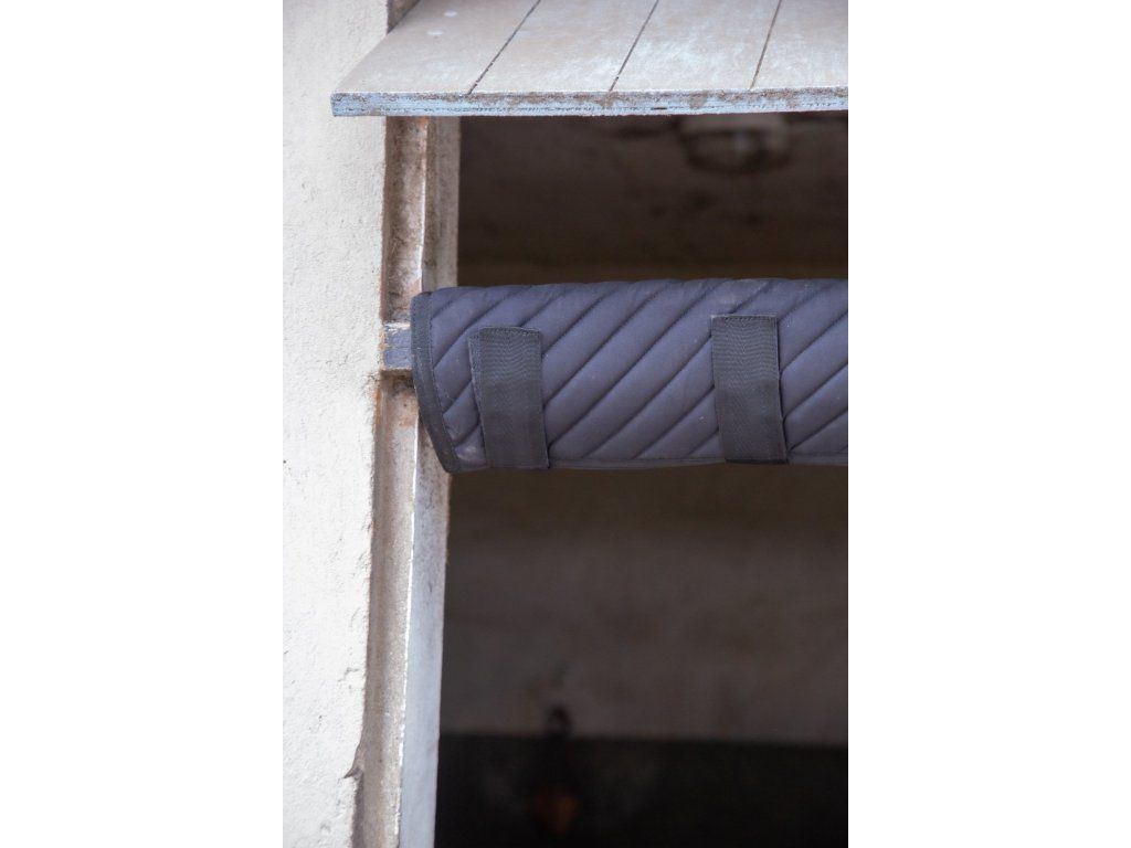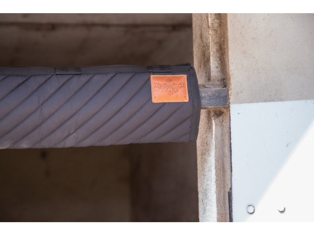 Praktická ochrana hlavy na dvere boxu, ktorá chráni kone pred poranením. Vďaka niekoľkým suchým zipsom sa ľahko upevňuje, pevne drží na mieste a je ideálnym riešením na prevenciu zranení v boxe. Dĺžka: 1 m.