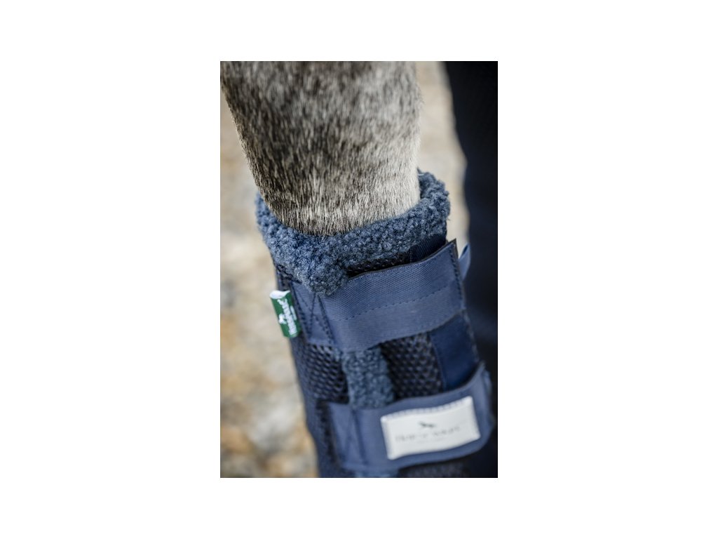 Chrániče Show Ready vyrobené z priedušného 3D airmesh materiálu s mäkkou polstrovanou podšívkou, ktorá udrží nohy koňa čisté a chránené pred pretekmi. Lemovanie z umelej kožušiny dodáva hebký a útulný pocit. Anatomický strih so štyrmi nastaviteľnými suchými zipsami umožňuje perfektné prispôsobenie rôznym tvarom nôh. Dodávané v páre.
