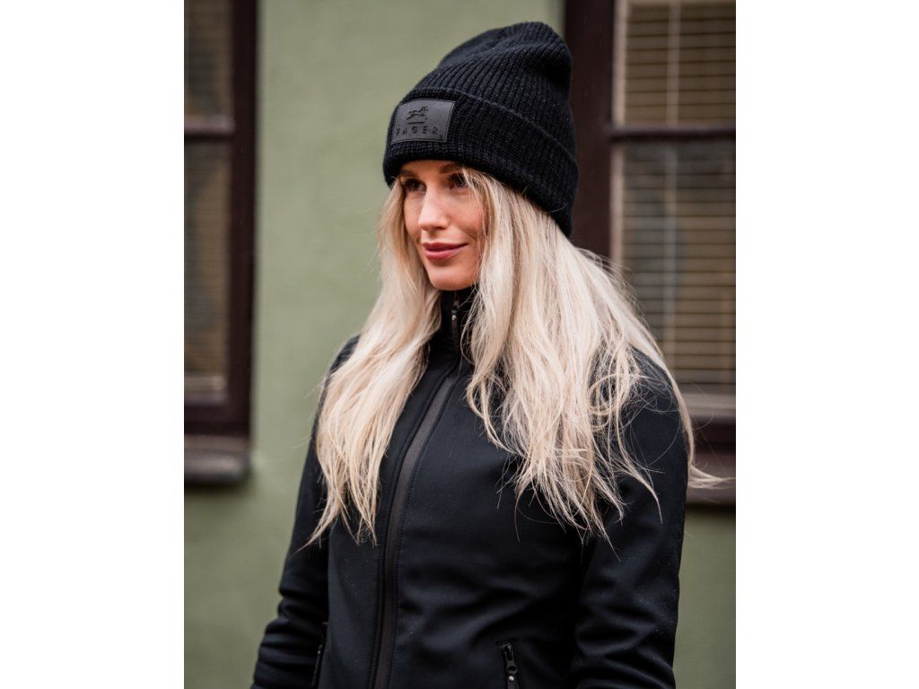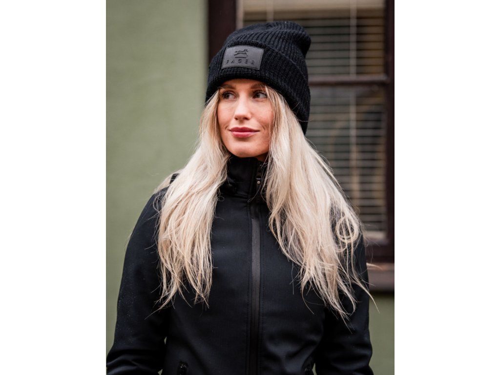 Pohodlná zimná pletená čiapka v čiernej farbe, vpredu vyrazené silikónové logo koňa Fager unisex, jedna veľkosť.