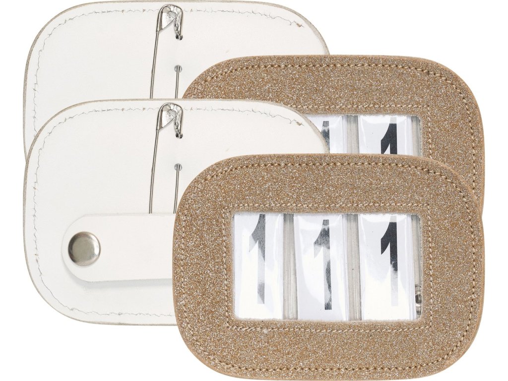 Kožené štartovné číslo Glitter Square dodá vášmu súťažnému outfitu výrazný trblietavý vzhľad. Vďaka zapínaniu na spínací špendlík a patentku sa ľahko upevňujú a bezpečne držia na mieste. Umožňujú vloženie až troch číslic a dodávajú sa v sade po dvoch kusoch.