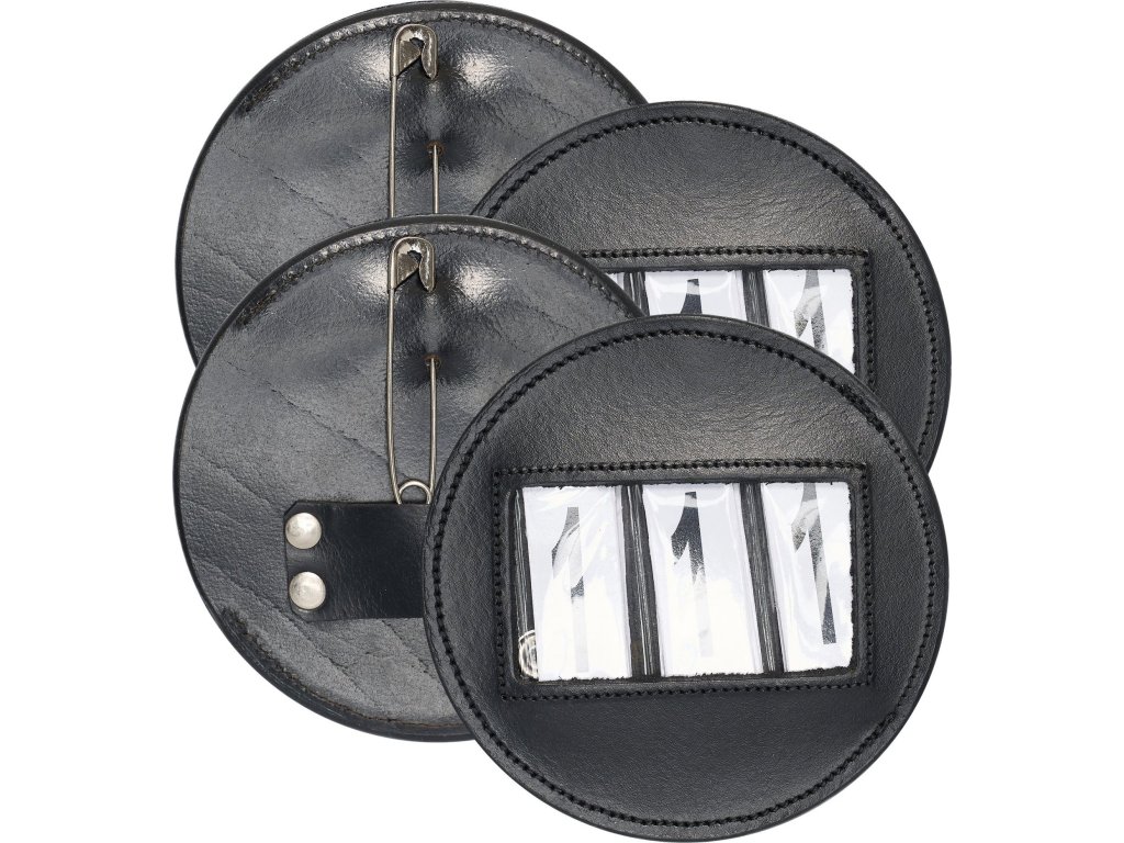 Klasická súprava okrúhlych štartových čísel s koženým vonkajším vyhotovením je praktickým a nadčasovým doplnkom na preteky. Vďaka zapínaniu na spínací špendlík a patentku sa čísla dajú ľahko a bezpečne pripevniť. Držiaky umožňujú vloženie až troch číslic a sú vhodné pre rôzne jazdecké disciplíny.