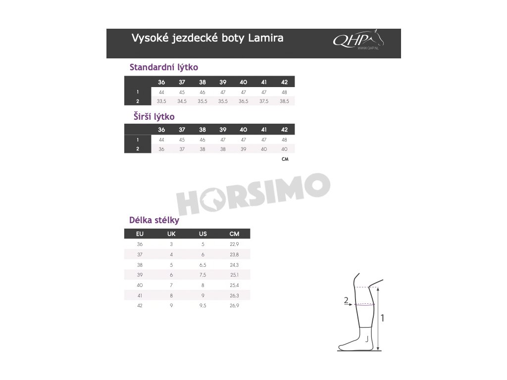 Čižmy jazdecké Lamira QHP, širšie lýtko, pre dospelých, čierne
