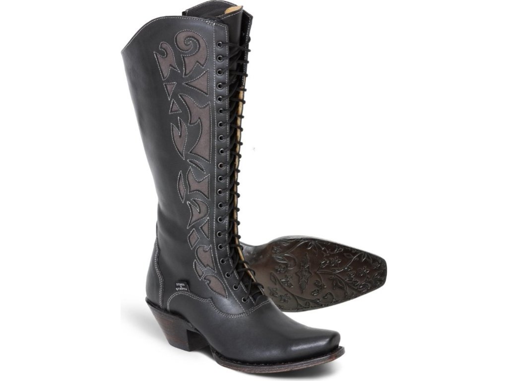 Dámske westernové čižmy z kvalitnej kože so šnurovaním. Zvršok, podšívka, podpätok aj podrážka sú tiež vyrobené z kvalitnej kože. Majú polstrovanú stielku a zips na zadnej časti. Ručná výroba podľa starej mexickej obuvníckej tradície. Kvalitne spracovaná podrážka je vyrobená metódou Goodyear - podošva je v tomto prípade prišitá priamo k stielke. Hlavnou výhodou tejto metódy je možnosť vymeniť podošvu v prípade opotrebovania, čo zaručuje dlhú životnosť obuvi.