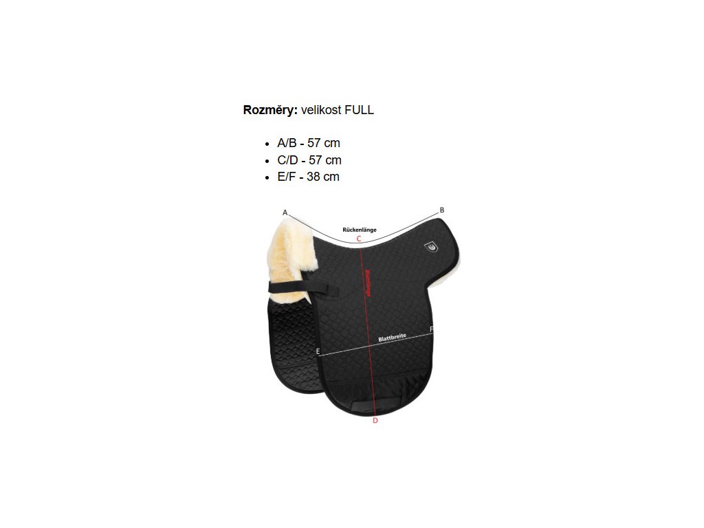 Vykrojená drezúrna podsedlová dečka od Werner Christ Horse s barančekom v oblasti chrbta. Baranček je vyrobený z odolnej pravej ovčej vlny vysokej kvality (výška vlny cca 30 mm). Vrchná strana je vyrobená z odolnej bavlnenej tkaniny. Dečka je anatomicky tvarovaná, dokonale rozkladá tlak a pomáha úľave pri nárazoch. Pravá vlna zabraňuje poteniu a premrznutiu a je vysoko priedušná. Zabraňuje tiež vzniku otlakov a odrenín, podporuje krvný obeh a uvoľňuje svalové napätie. V oblasti podbrušníka je integrovaná nylonová vložka. Dečka je vybavená sedlovými pútkami na suchý zips a pútkami na podbrušník. Veľkosť FULL.