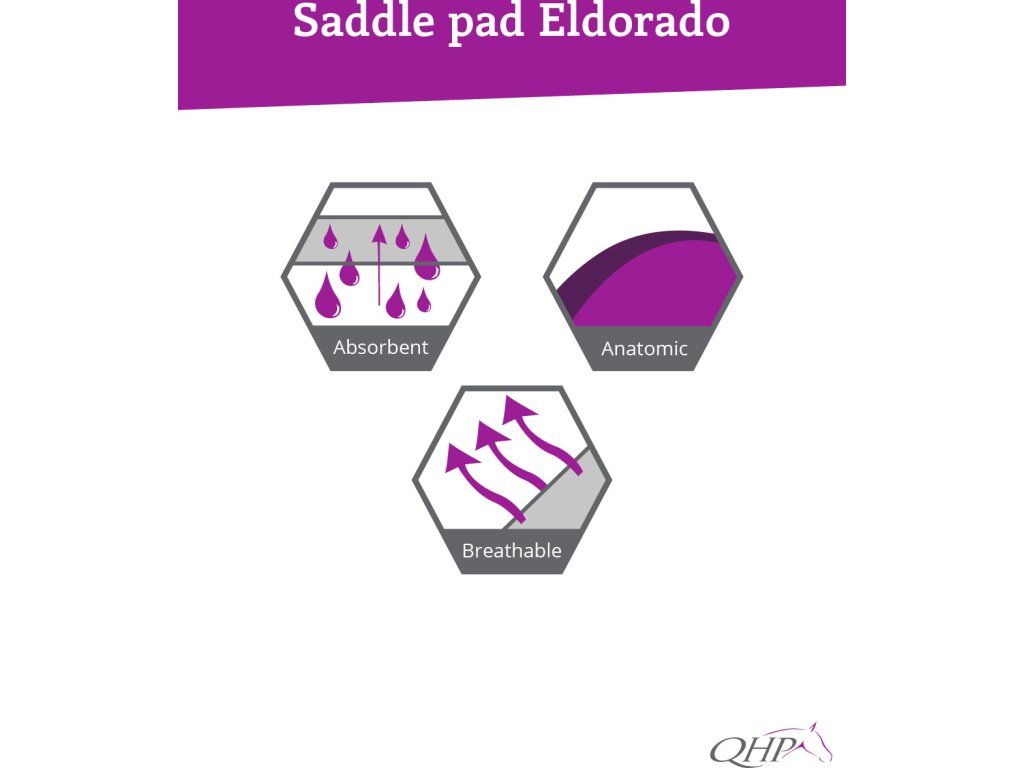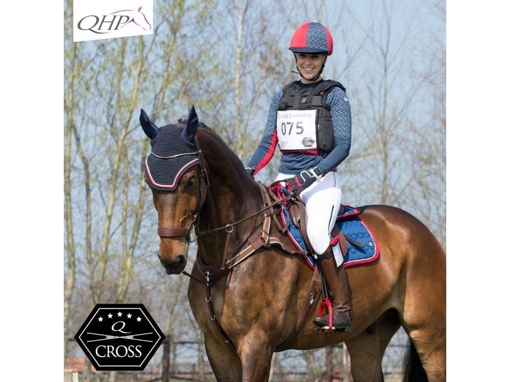 Anatomicky tvarovaná podsedlová dečka, ktorá je tvorená absorpčnou tkaninou, ktorá dokonale pohlcuje pot. Anatomické vykrojenie na podbrušník a podšitie savým vaflovým materiálom. Elegantné lemovanie pomocou paspulky. Vybavená pútkami na pripevnenie k sedlu. Perfektne sedí pod skokové aj drezúrne sedlá. Dečka je súčasťou kolekcie Q-Cross. Chcete vedieť, akú veľkosť potrebuje váš kôň? Pozrite si tabuľku veľkostí (pozri obrázky).