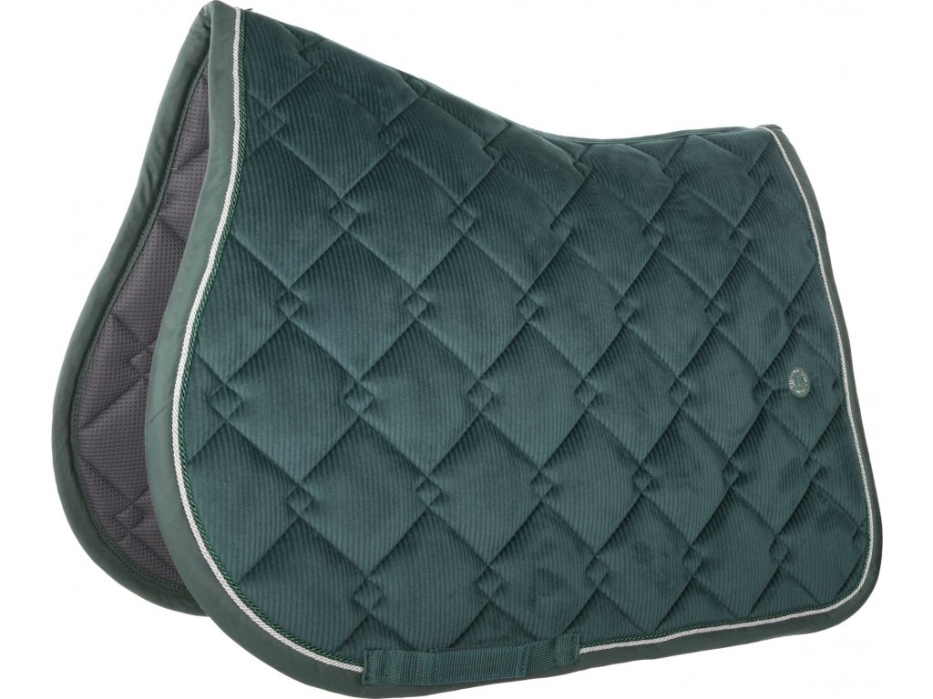 Semišová podsedlová dečka s elegantným prešívaním s 3D efektom. Podšívka je vyrobená z bambusového uhlia, ktoré zabezpečuje antibakteriálne a termoregulačné vlastnosti, čím zvyšuje pohodlie a ochranu pokožky koňa. Zdobená kontrastnou paspulkou. Vybavená pútkami na podbrušník. Možno prať v práčke, nesušte v sušičke.