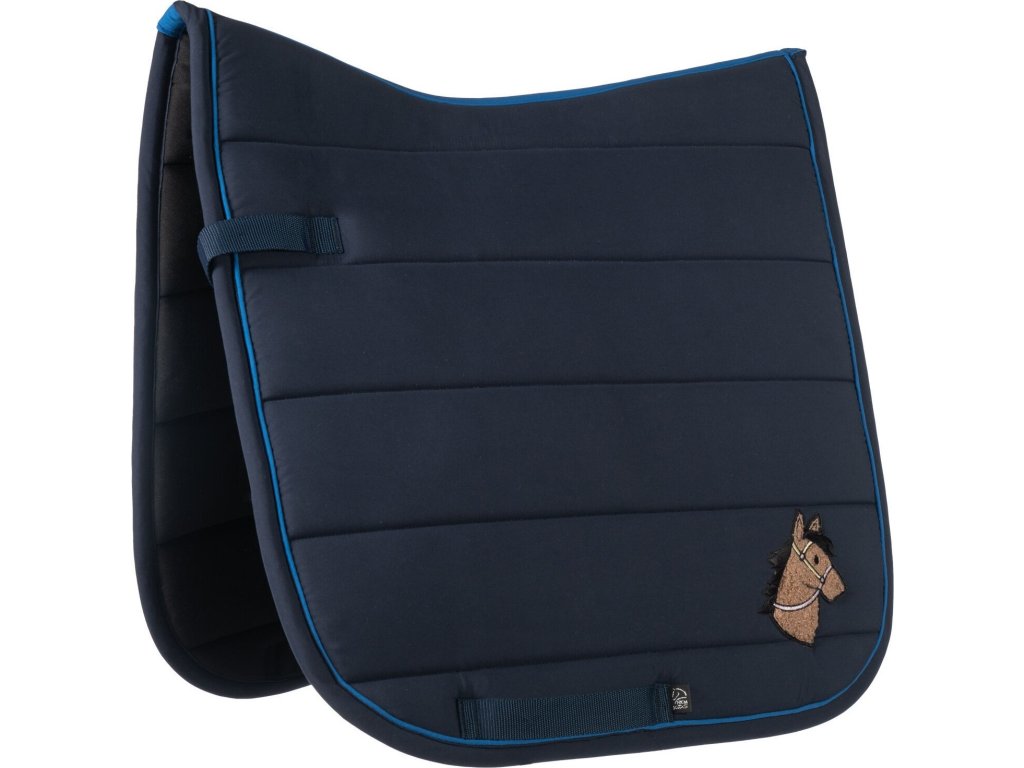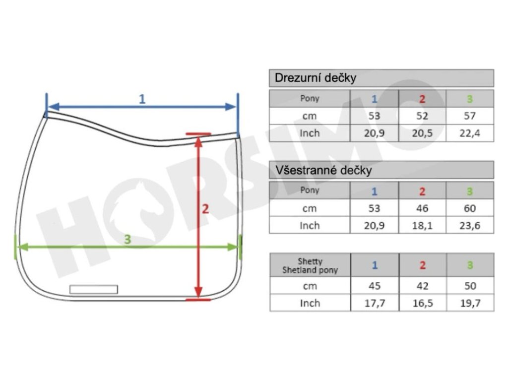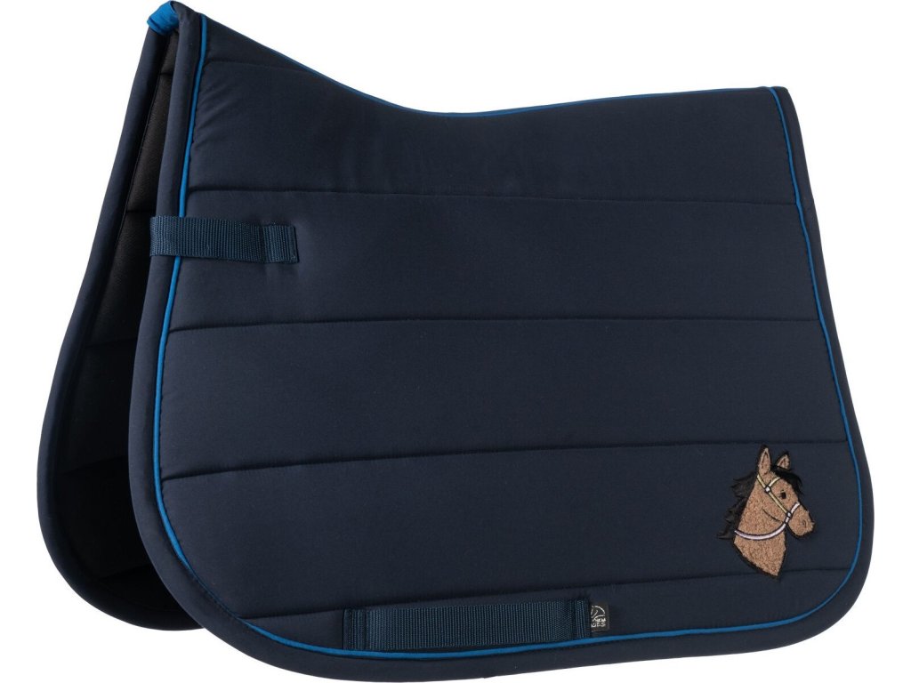 Podsedlová dečka pre poníky a shetlandské poníky s penovou a vatovou výplňou, ktorá účinne tlmí nárazy a zaisťuje pohodlie. Zdobí ju jednoduché prešívanie, paspulka a roztomilá nášivka s konskou hlavou. Je vybavená klasickými pútkami k sedlu aj pútkami na podbrušník. Možno prať v práčke pri 30 °C a sušiť v sušičke. Odporúčame jemný prací program a zapnutie suchých zipsov pred praním.