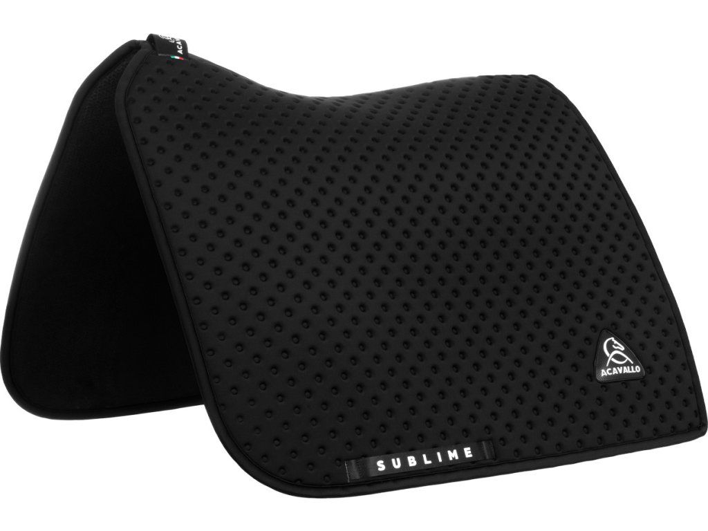 Moderná podsedlová dečka v drezúrnom prevedení je vyrobená z inovatívneho lycrového materiálu s protišmykovými 3D bodmi, ktoré zaisťujú stabilné usadenie sedla a pomáhajú rovnomerne rozkladať tlak počas jazdy. Podšívka z pamäťovej peny výborne absorbuje nárazy a prispieva k väčšiemu pohodliu koňa. Stredová vložka z 3D Spacer materiálu sa prispôsobí tvaru chrbta koňa, eliminuje tlak na chrbticu a zvyšuje priľnavosť k sedlu. Ergonomický tvar poskytuje väčšiu voľnosť pohybu, pomáha predchádzať problémom v citlivej oblasti chrbtice a rovnomerne rozkladá váhu. Dečka je určená pod drezúrne sedlá, vyrába sa v jednej univerzálnej veľkosti COB/FULL.
