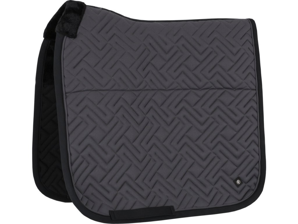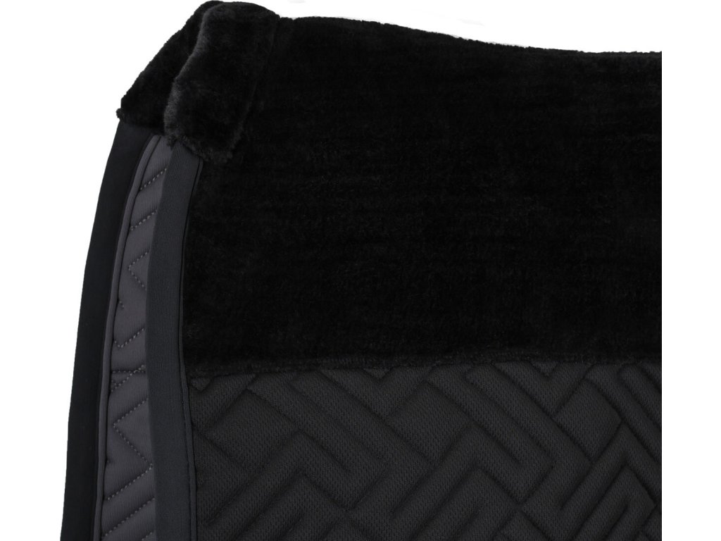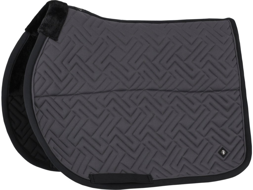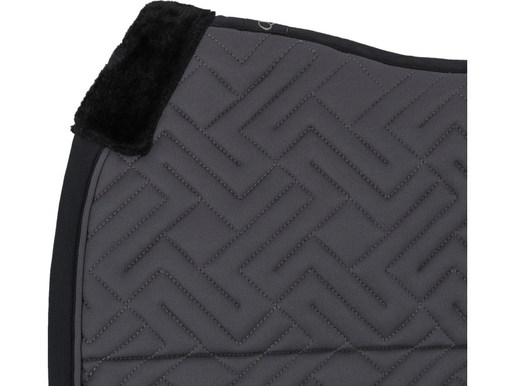 Elegantná anatomicky tvarovaná podsedlová dečka. Vybavená je syntetickým barančekom v oblasti kohútika a po celej dĺžke chrbta, čo zaisťuje optimálne rozloženie tlaku. Vnútorná sieťová podšívka je priedušná a účinne absorbuje pot. Dečka je vybavená klasickými pútkami na podbrušník. Zdobí ju elegantné prešívanie, kontrastný lem a decentné logo „Q“.