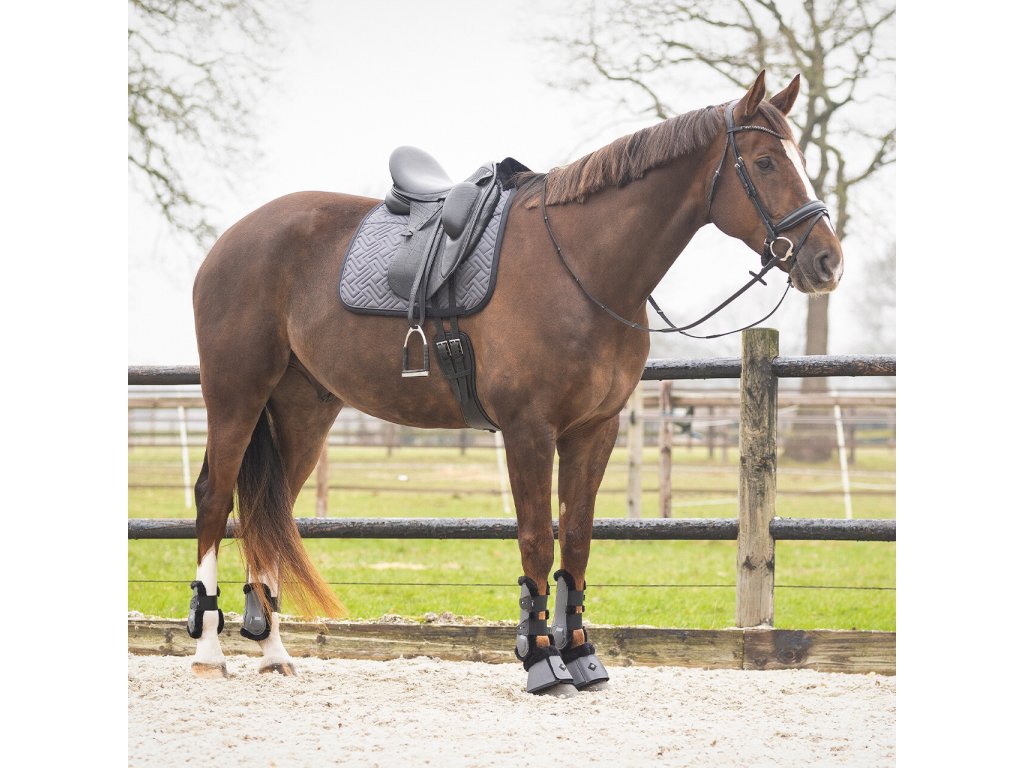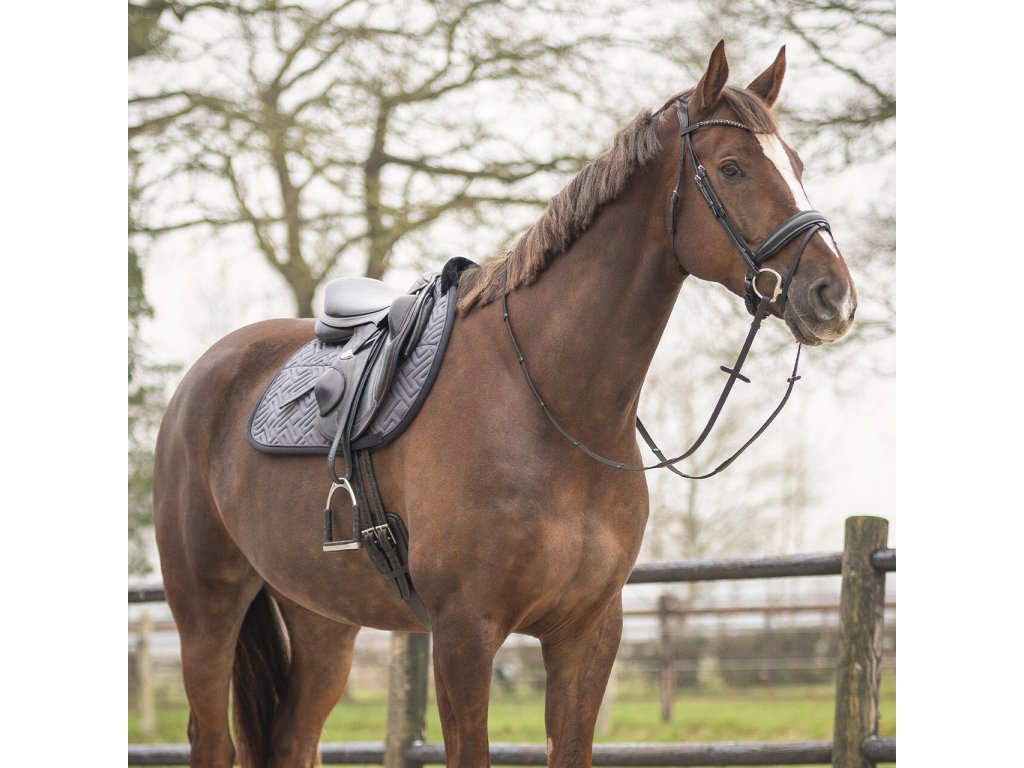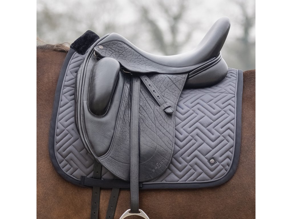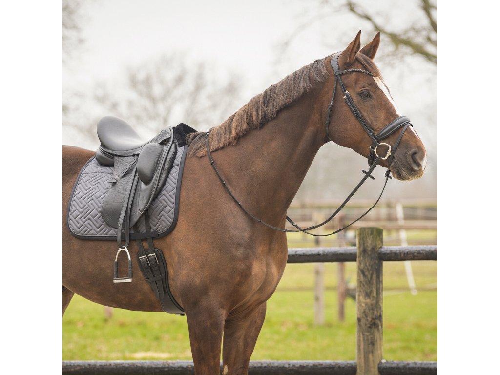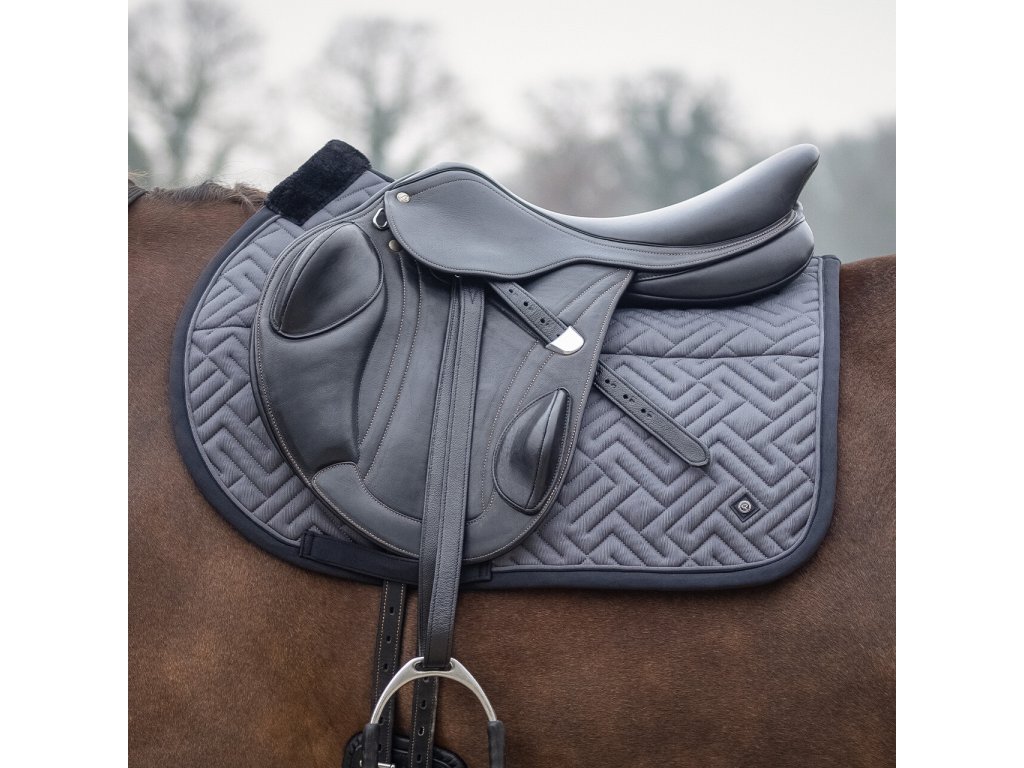 Elegantná anatomicky tvarovaná podsedlová dečka. Vybavená je syntetickým barančekom v oblasti kohútika a po celej dĺžke chrbta, čo zaisťuje optimálne rozloženie tlaku. Vnútorná sieťová podšívka je priedušná a účinne absorbuje pot. Dečka je vybavená klasickými pútkami na podbrušník. Zdobí ju elegantné prešívanie, kontrastný lem a decentné logo „Q“.