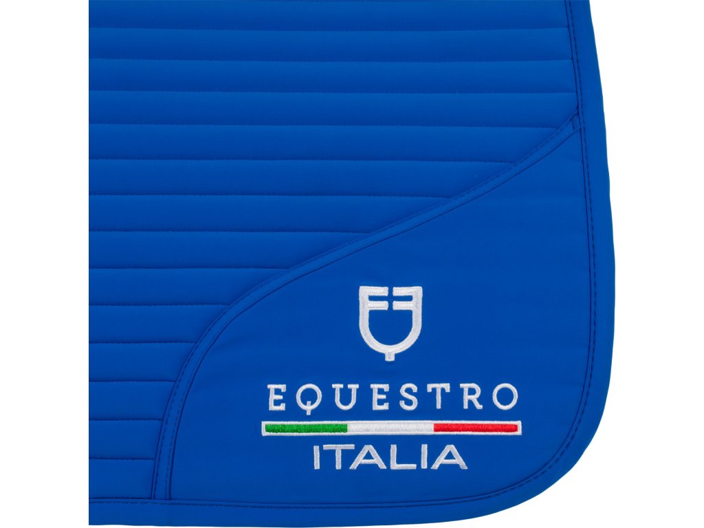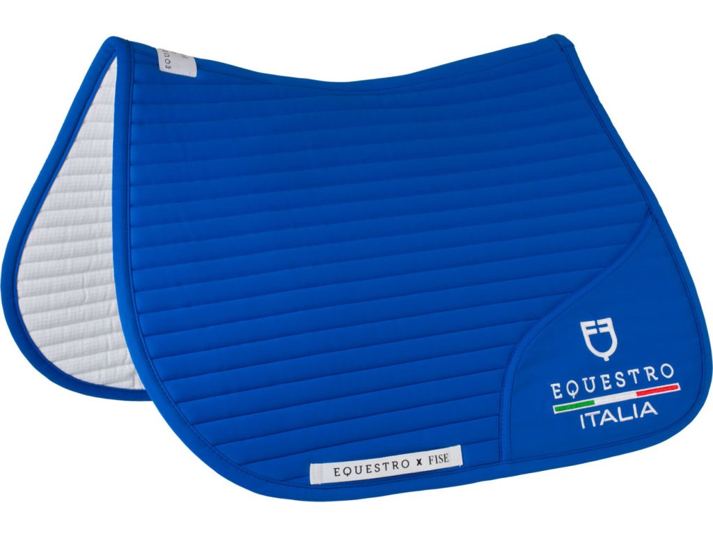 Skoková podsedlová dečka Equestro X Fise spája precízne spracovanie s maximálnym pohodlím pre koňa. Vďaka horizontálnemu prešívaniu a elegantnému vzhľadu skvele vynikne pri tréningu aj na pretekoch. Anatomický strih zabraňuje tlaku na kohútik a chráni pred odrením. Vnútorná strana je vybavená špeciálnou voštinovou podšívkou, ktorá zaisťuje efektívnu cirkuláciu vzduchu a odvádza prebytočné teplo. Vďaka technickej tkanine je dečka vysoko priedušná a zároveň účinne tlmí nárazy. Dečka je zdobená logom Equestro s talianskou trikolórou a štítkom „Equestro x FISE“. Spája odolnosť, priedušnosť a športovú eleganciu.