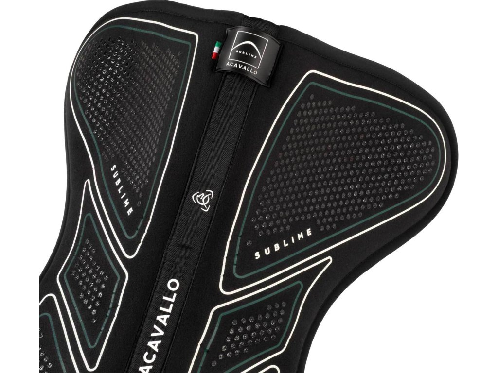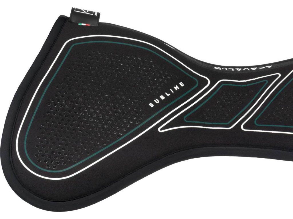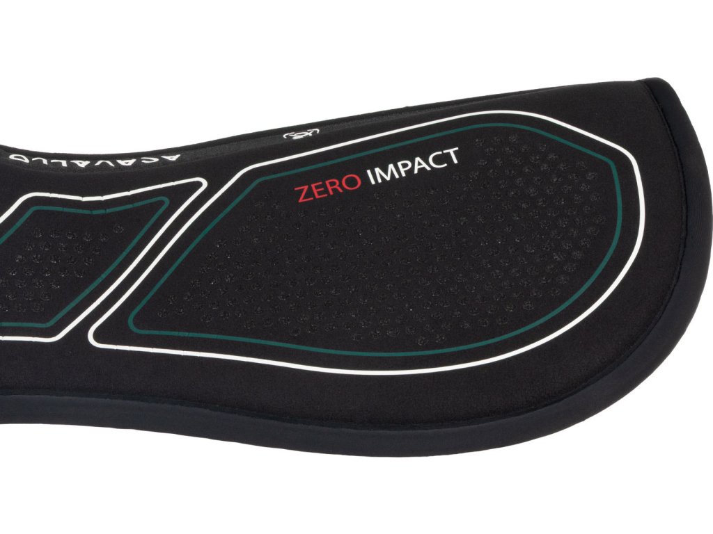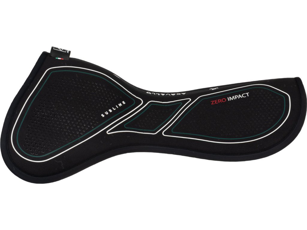 Tlmiaca dečka pod sedlo „Sublime Zero Impact“ s vyvýšenou zadnou časťou (riserom) je navrhnutá tak, aby poskytovala cielenú podporu v zadnej časti sedla. Je ideálna pre kone s prehnutým chrbtom alebo pre sedlá, ktoré majú tendenciu padať dozadu, prípadne vyžadujú dodatočné vyvýšenie zadnej časti. Vďaka integrovanému zadnému zvýšeniu pomáha rovnomerne rozkladať váhu jazdca a zaisťuje optimálne vyváženie záťaže na chrbte koňa. Kombinácia pokročilých technických materiálov zaisťuje účinné tlmenie nárazov a kompletnú ochranu. Vďaka tomu je podložka ideálna pre kone, ktoré vyžadujú korekciu polohy sedla. Vnútorná vrstva je vyrobená z pamäťovej peny s vysokou hustotou (90 kg/m³) s hrúbkou 16 mm, ktorá zaručuje výnimočné rozloženie tlaku a vynikajúce odpruženie. Perforovaný povrch zlepšuje priedušnosť, zatiaľ čo silikónové vložky zabraňujú kĺzaniu sedla počas jazdy. Dečka je navrhnutá v univerzálnej veľkosti COB/FULL.