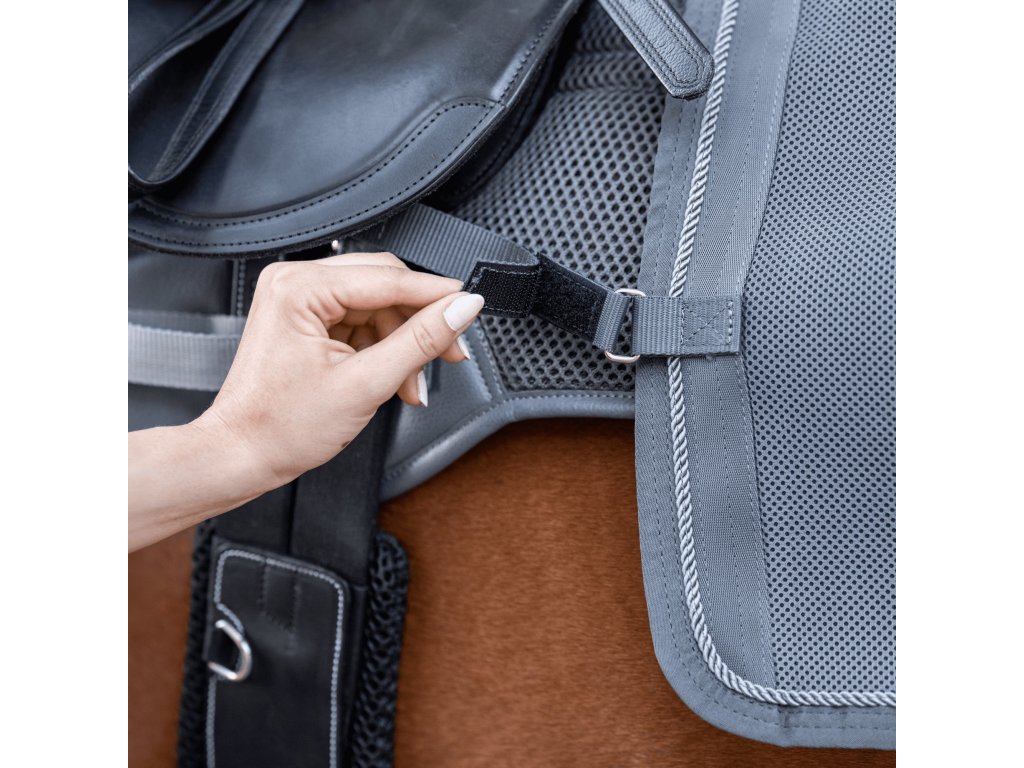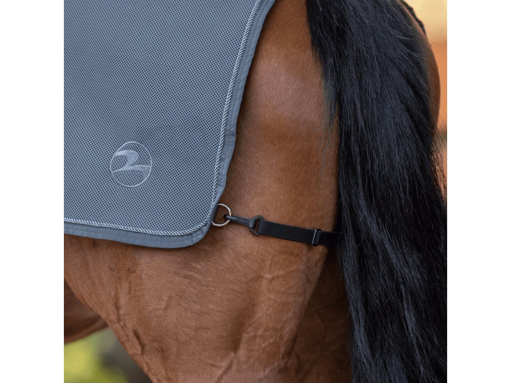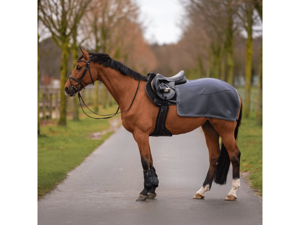 Bedrová deka 3D AIR FL je skvelou voľbou pre rýchle osušenie a zaistenie pohodlia počas aj po práci. Inovatívny materiál 3D AIR DRY vďaka svojej štruktúre výrazne zväčšuje povrch a urýchľuje odvod vlhkosti. V oblasti chrbta a bedier je deka podšitá fleecom, ktorý chráni citlivé chrbtové svaly a udržuje ich v teple. Vďaka zapínaniu na štyri suché zipsy perfektne drží na mieste aj pri rýchlejších chodoch alebo pri skákaní. Možno ju tiež ľahko zložiť bez nutnosti povoľovať sedlo alebo zosadať, takže jazdec môže plynule pokračovať v tréningu. Je skvelá aj pre kone s hustou srsťou, s tendenciou sa potiť či prehrievať, ale aj pre ostrihané kone v teplejšom počasí alebo počas prechodného obdobia.