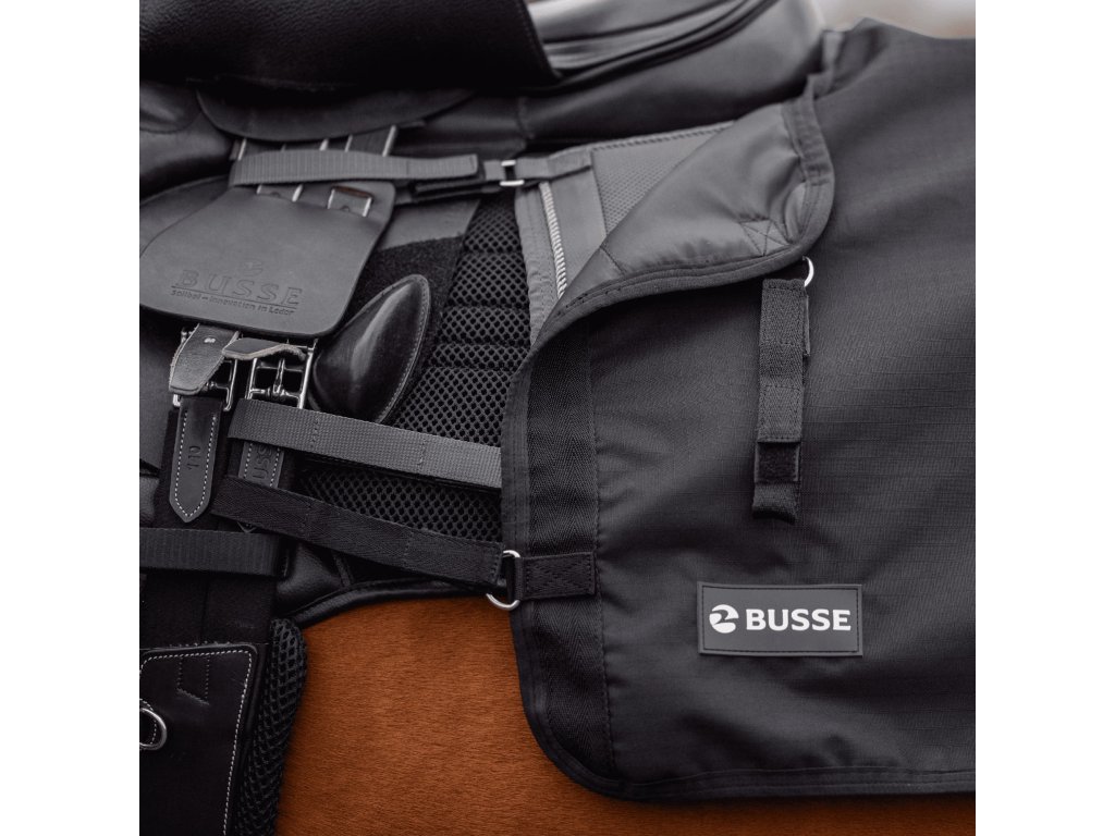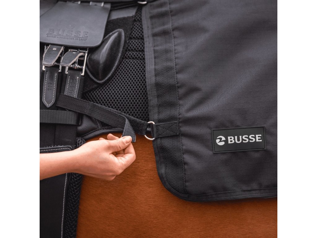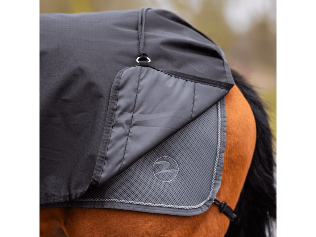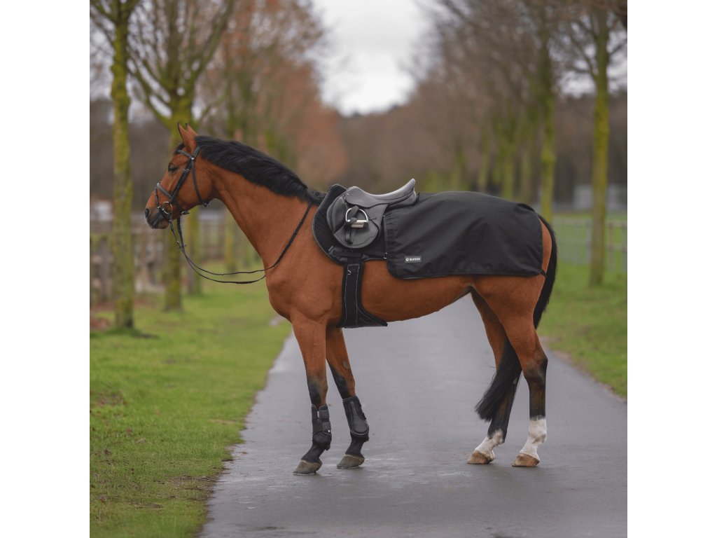 Bedrová deka Rain FX bez zateplenia je ideálnym kúskom na vonkajší tréning aj v náročnejších poveternostných podmienkach. Vonkajší materiál je vyrobený z odolného ripstop polyesteru s pevnosťou 600 D. Spoľahlivo chráni pred vetrom, dažďom aj ľahším chladom a zaisťuje, aby citlivé partie v oblasti bedier a slabín zostali vždy v suchu a pohodlí. Vďaka bezpečnému systému zapínania drží pevne na svojom mieste aj vo rýchlejších chodoch alebo pri skákaní. Možno ju tiež ľahko zložiť bez nutnosti povoľovať sedlo alebo zosadať, takže jazdec môže plynule pokračovať v tréningu.