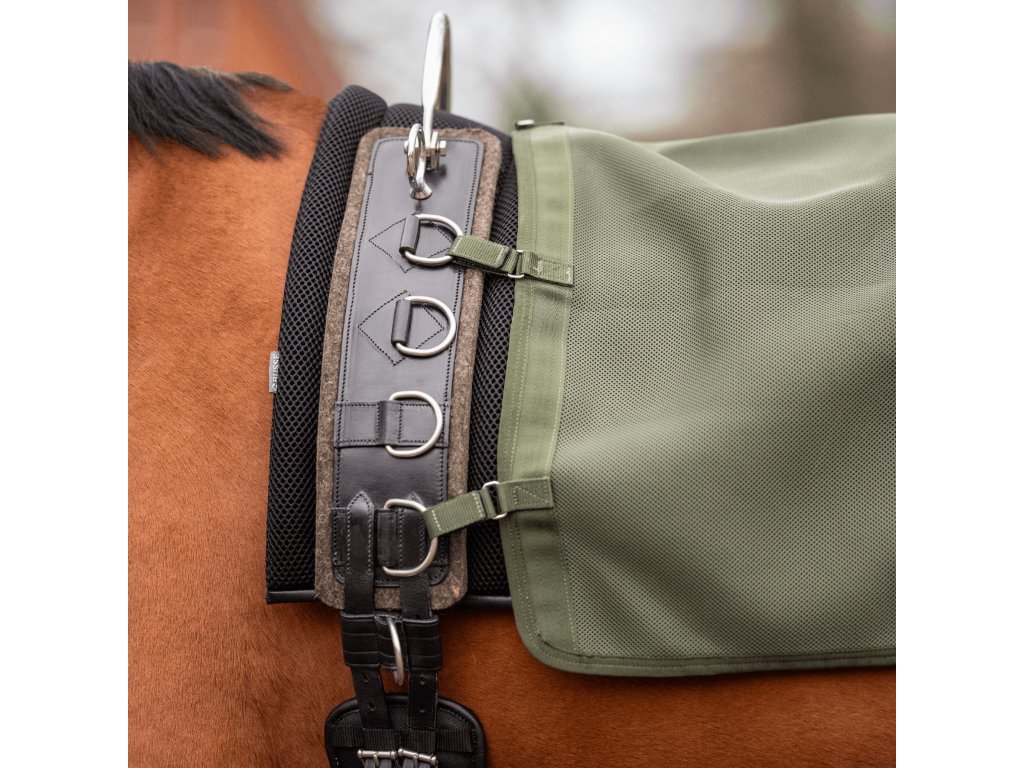 Pracovná deka 3D AIR ST je ideálnou voľbou na lonžovanie a prácu zo zeme. Je vyrobená z inovatívneho materiálu 3D AIR DRY, ktorý vďaka svojej štruktúre výrazne zväčšuje povrch a urýchľuje odvod vlhkosti. Poskytuje mimoriadnu priedušnosť a schnutie počas aj po intenzívnom tréningu. Je skvelá aj pre kone s hustou srsťou, s tendenciou sa potiť či prehrievať, ale aj pre ostrihané kone v teplejšom počasí alebo počas prechodného obdobia.