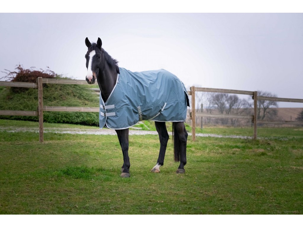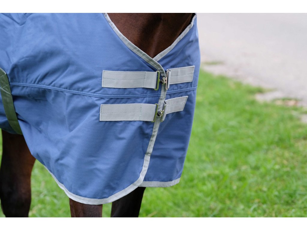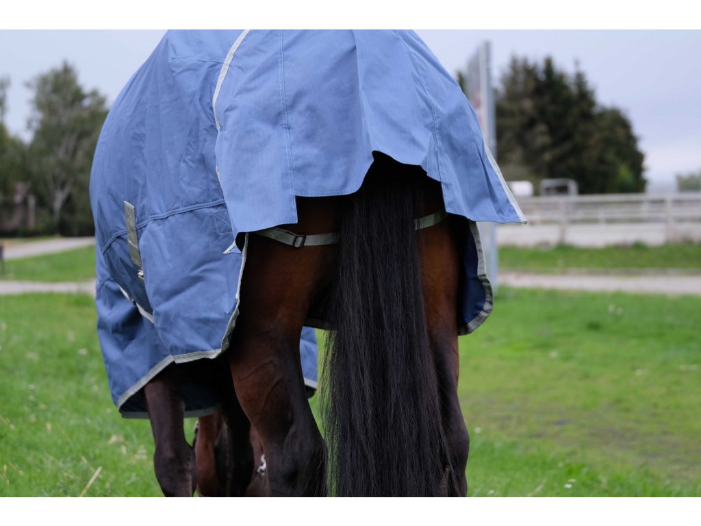 Táto nepremokavá výbehová deka je vyrobená z recyklovaného polyesteru s odolnosťou proti roztrhnutiu 600 D a podlepenými švami, ktoré zaisťujú maximálnu ochranu pred dažďom a vlhkosťou. Vnútorná strana s nylonovou podšívkou sa postará o pohodlie pri nosení. Deka má veľkú nepremokavú chlopňu na chvost pre ešte spoľahlivejšie krytie. Na kohútiku sa nachádza mäkká podložka zo syntetického barančeka, ktorá bráni odreninám a zvyšuje komfort. Deka ponúka krížové zapínanie pod bruchom, nastaviteľný popruh pod chvost a dvojité zapínanie. Krčný diel sa k tejto deke predáva samostatne.