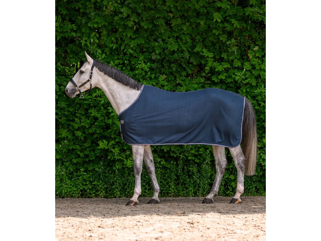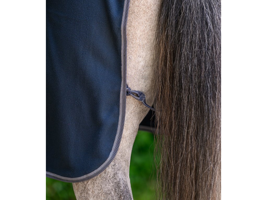 Klasická fleecová deka s jednoduchým predným zapínaním na T-pracku. Deka je vybavená popruhom pod chvost. Elegantný kontrastný lem dodáva deke štýlový vzhľad.