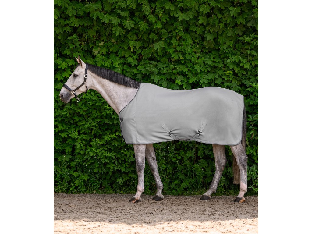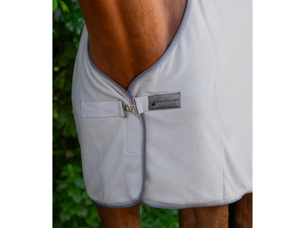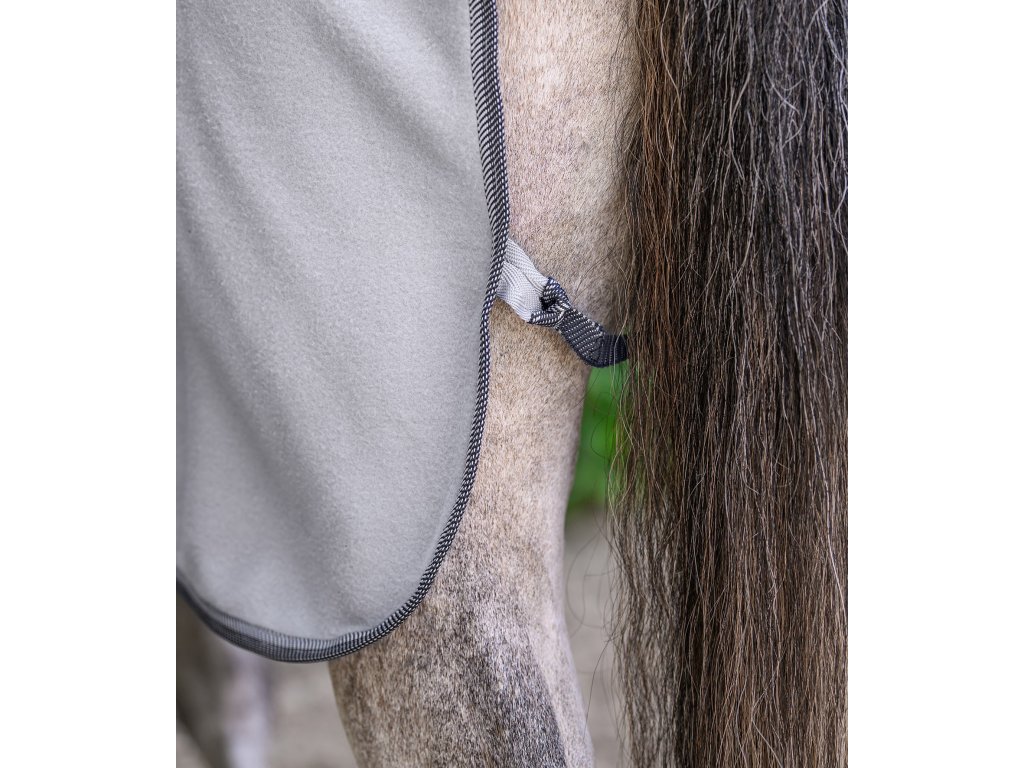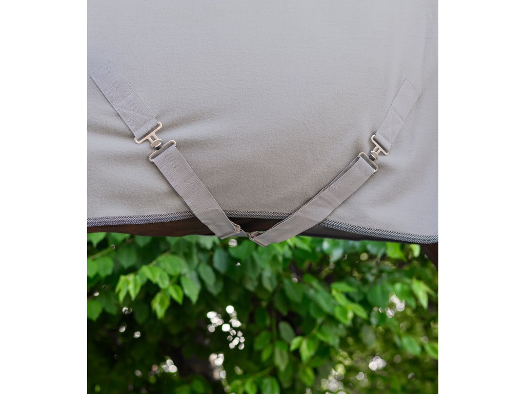 Klasická fleecová deka s jednoduchým predným zapínaním na T-pracku. Deka je vybavená krížovým zapínaním pod bruchom a popruhom pod chvost. Elegantný kontrastný lem dodáva deke štýlový vzhľad.