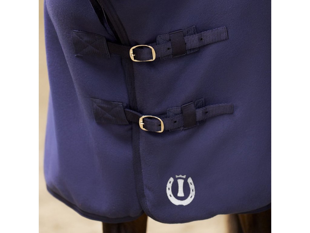 Odpocovacia deka s integrovaným krčným dielom je vyrobená z kvalitného fleecového materiálu, ktorý účinne odvádza vlhkosť od tela koňa, podporuje rýchle schnutie a pomáha predchádzať prechladnutiu. Mäkký a hrejivý fleece zaisťuje vysoký komfort pri nosení a zároveň si zachováva dobrú priedušnosť. Deka je vybavená dvojitým predným zapínaním, krížovými popruhmi pod bruchom a popruhom pod chvostom. Krčný diel je v hornej časti vybavený popruhom so suchým zipsom, ktorý umožňuje pripnutie k ohlávke. Výrazná výšivka dodáva deke charakteristický a reprezentatívny vzhľad značky Imperial Riding.