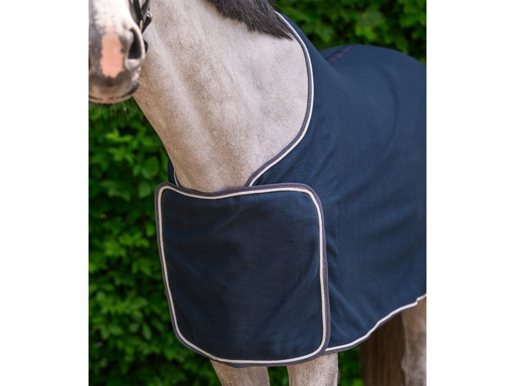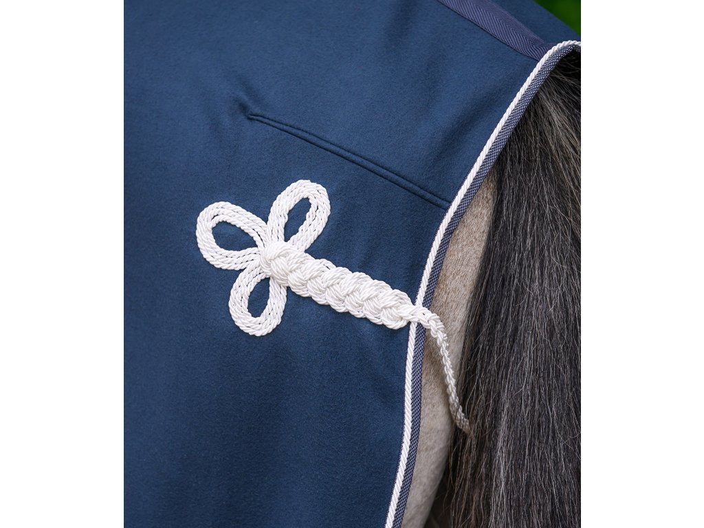 Kvalitná odpocovacia deka v klasickom strihu kombinuje funkčnosť s elegantným vzhľadom a kvalitným spracovaním. Na hrudi je vybavená klasickou prackou a odnímateľnou chlopňou so zapínaním na suchý zips. Kontrastný ozdobný lem a dekoratívny popruh pod chvostom dodávajú deke štýlový vzhľad. Deka ponúka priestor pre vlastnú personalizáciu. Chlopňa na hrudi a oblasť slabín umožňujú ľahké umiestnenie výšiviek, log sponzorov alebo názvov jazdeckých klubov.