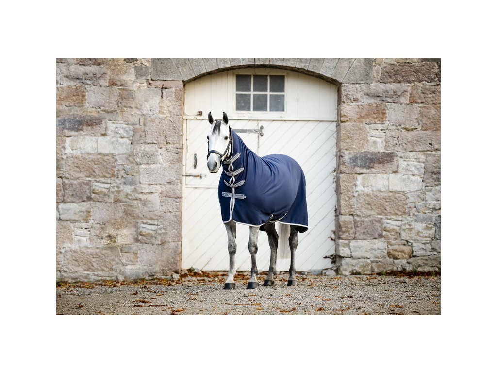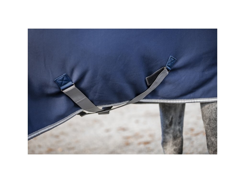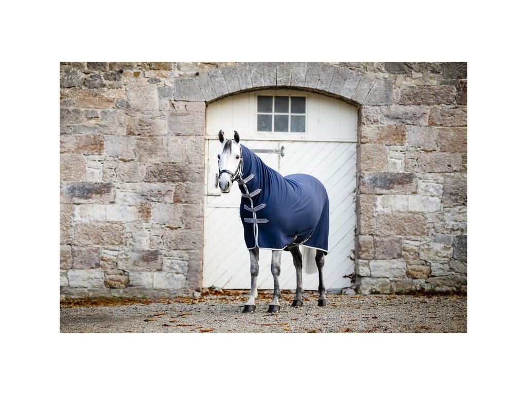 Odpocovacia deka Amigo Jersey Integrated chráni koňa od uší až po chvost a spoľahlivo odvádza vlhkosť, takže zostane v teple a pohodlí. Je vyrobená z hladkého džersejového polyesteru, ktorý zabraňuje priľnavosti pilín. Praktické detaily zahŕňajú integrovaný krčný diel, odnímateľné krížové zapínanie pod bruchom, jednoduché predné zapínanie a popruh pod chvostom.