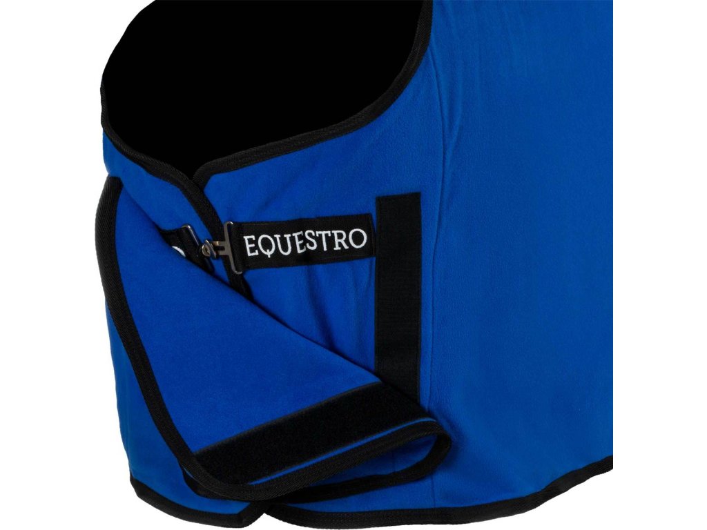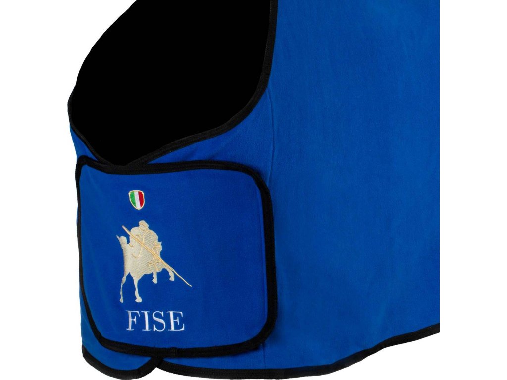Fleecová deka Equestro X Fise je vyrobená z jemného, na dotyk veľmi príjemného fleecu s úpravou proti žmolkovaniu. Poskytuje koňovi maximálne pohodlie a hrejivosť, zatiaľ čo kvalitný materiál podporuje odparovanie vlhkosti, čím napomáha rýchlejšiemu schnutiu srsti. Deka má jednoduché predné zapínanie s klopou, ktoré zdobí výšivka loga Fise a mäkké syntetické polstrovanie v oblasti kohútika pre väčšie pohodlie a ochranu. Kontrastné lemovanie podčiarkuje elegantný vzhľad v štýle Equestro.