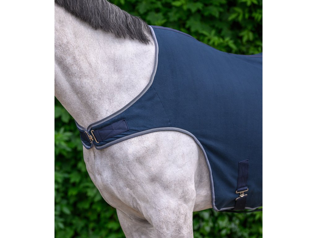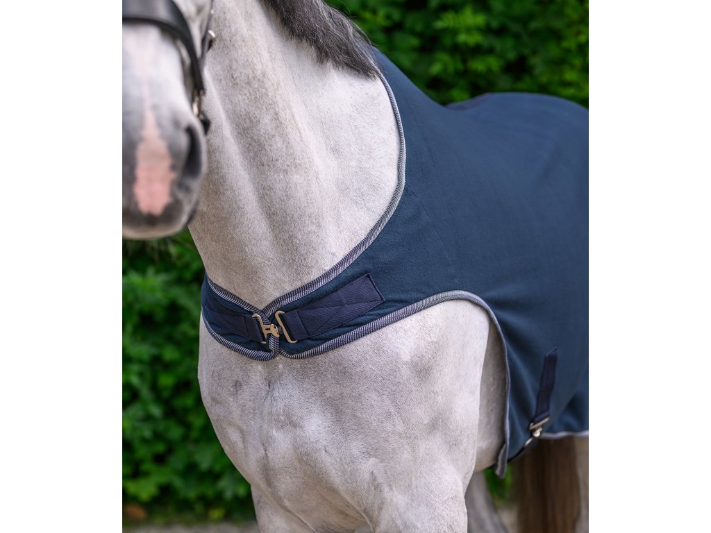 Pracovná fleecová deka, ktorá ponúka maximálnu voľnosť v pohybe vďaka špeciálnemu strihu. Deka je vybavená krížovými popruhmi, jednoduchým predným zapínaním na T-pracku a popruhom pod chvostom. Vhodná na vodenie, do kolotoča či na prácu zo zeme. Zároveň slúži ako odpocovacia deka.