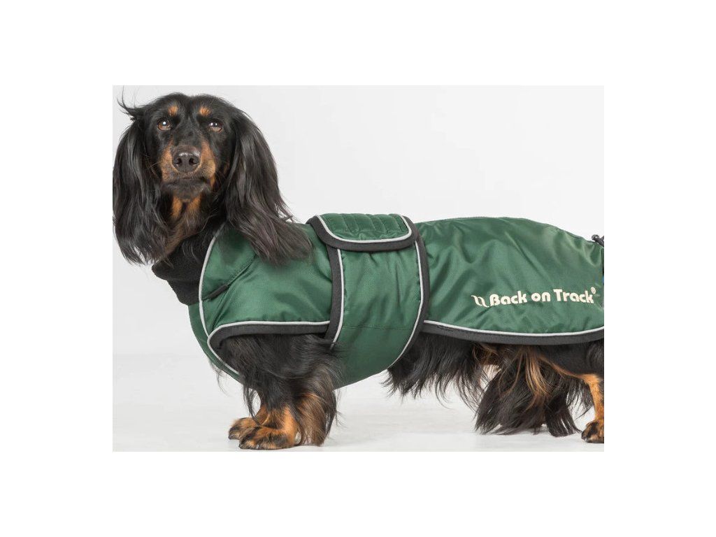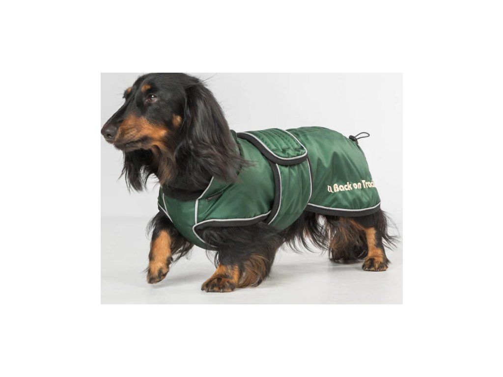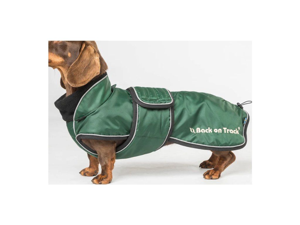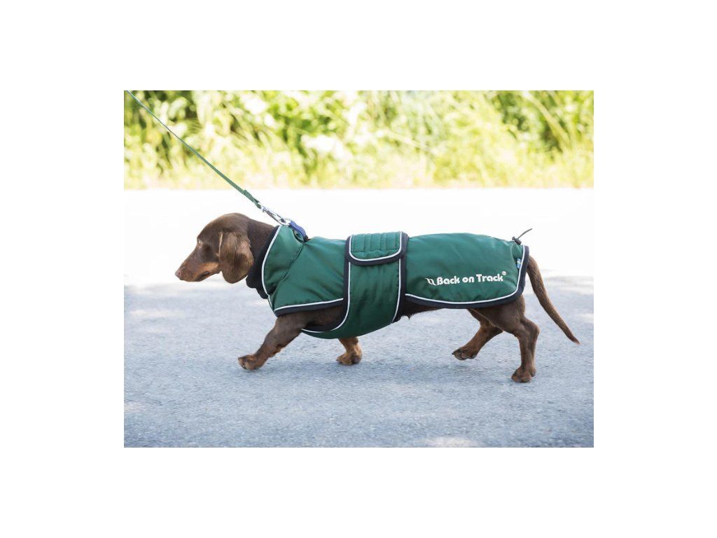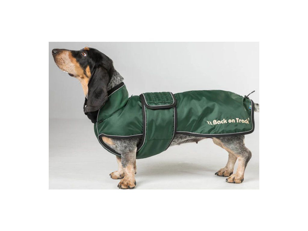 Univerzálna deka pre psy určená špeciálne pre plemená s dlhým chrbtom a krátkymi nohami, ako sú jazvečík, baset alebo drever. Deka má ľahkú výplň s podšívkou z materiálu Welltex®, ktorá udrží vášho psa v teple a pohodlí za každého počasia. Táto technológia môže zvýšiť krvný obeh a prispieť k zdravým svalom a kĺbom. Elastická šnúra na zadnej strane deky umožňuje nastaviť dĺžku, čo je ideálne, ak má váš pes dĺžku chrbta medzi dvoma veľkosťami. Golier má mäkkú flísovú podšívku Welltex®. Vonkajší materiál odpudzujúci vodu a vietor. Ľahko sa oblieka a zapína sa na bruchu pomocou suchého zipsu. Aby deka držala na mieste a neobmedzovala bežný pohyb psa, je vybavená elastickými popruhmi okolo zadných nôh. Vnútorná tkanina je tkaná tak, aby sa kožušina nezachytávala a nedráždila psa. Na krku je praktický otvor na pripevnenie vodítka k obojku psa. Vďaka reflexným detailom je deka počas večernej prechádzky viditeľná zo všetkých uhlov.