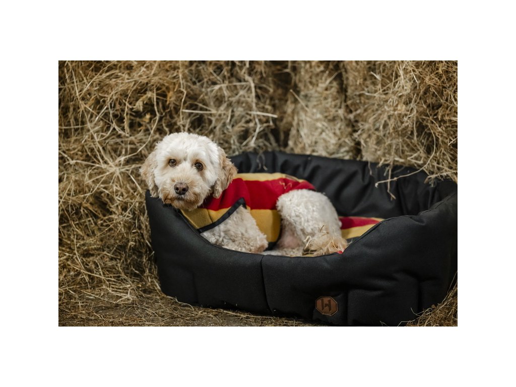Deka pre psov Newmarket je vyrobená z dvojitého fleecu s protižmolkovou úpravou, ktorý hreje, je priedušný a účinne odvádza vlhkosť. Vďaka nastaviteľnému prednému a brušnému zapínaniu na suchý zips skvele sadne a zároveň poskytuje voľnosť pohybu vďaka vykrojeniu pri predných nohách. Je vybavená otvorom na pripnutie vodítka. Celkový vzhľad podčiarkujú kožené prvky a decentná nášivka.