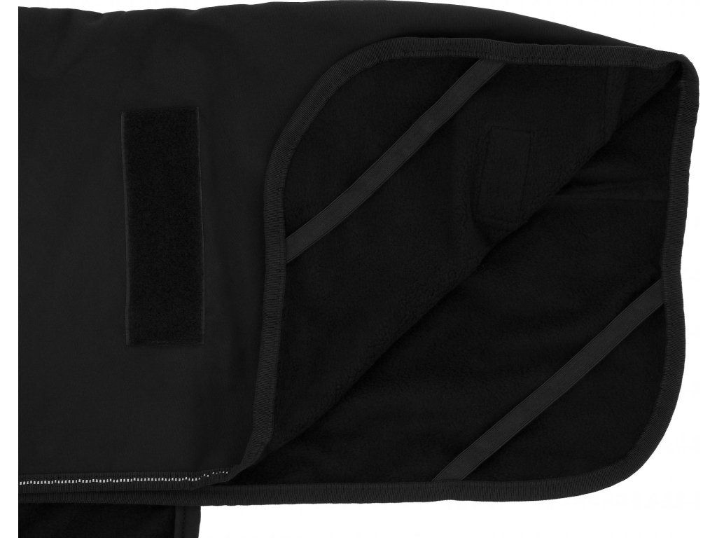 Táto deka pre psov je vyrobená z materiálu Soft Shell, ktorý je ultraľahký, vodoodolný, vetruvzdorný a zároveň priedušný. Vnútorná strana má výplň z polyuretánu a navyše má hrejivý polar fleece, čo zaisťuje optimálne pohodlie. Vďaka vysokému golieru s otvorom na obojok a vodítko a elastickému materiálu v oblasti hrudníka sa deka prispôsobí pohybu psa a zostane pevne na mieste. Praktické zapínanie zaisťuje brušný popruh so suchým zipsom po stranách. Pre jednoduchú údržbu je možné deku prať v práčke na 30 °C.